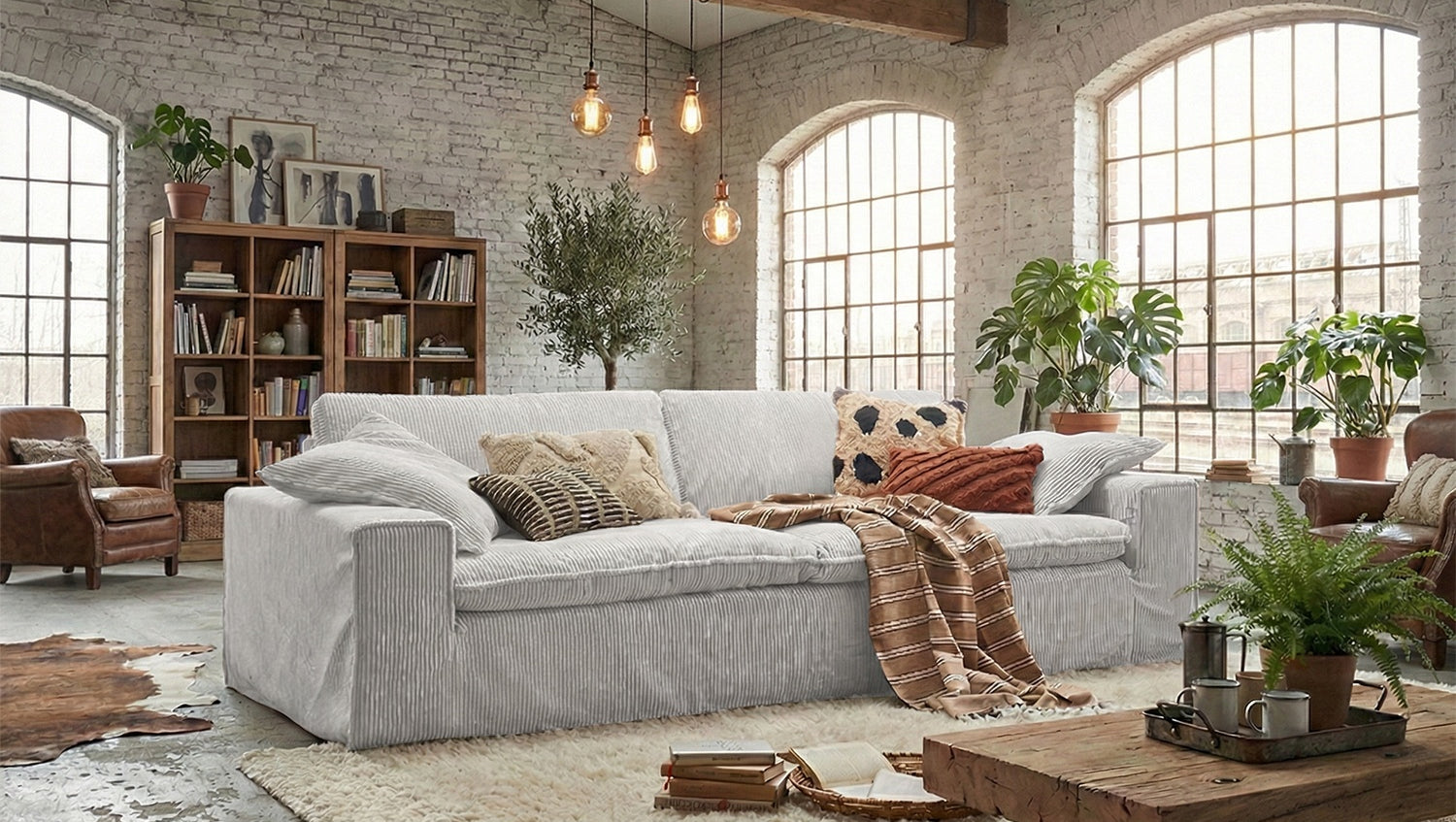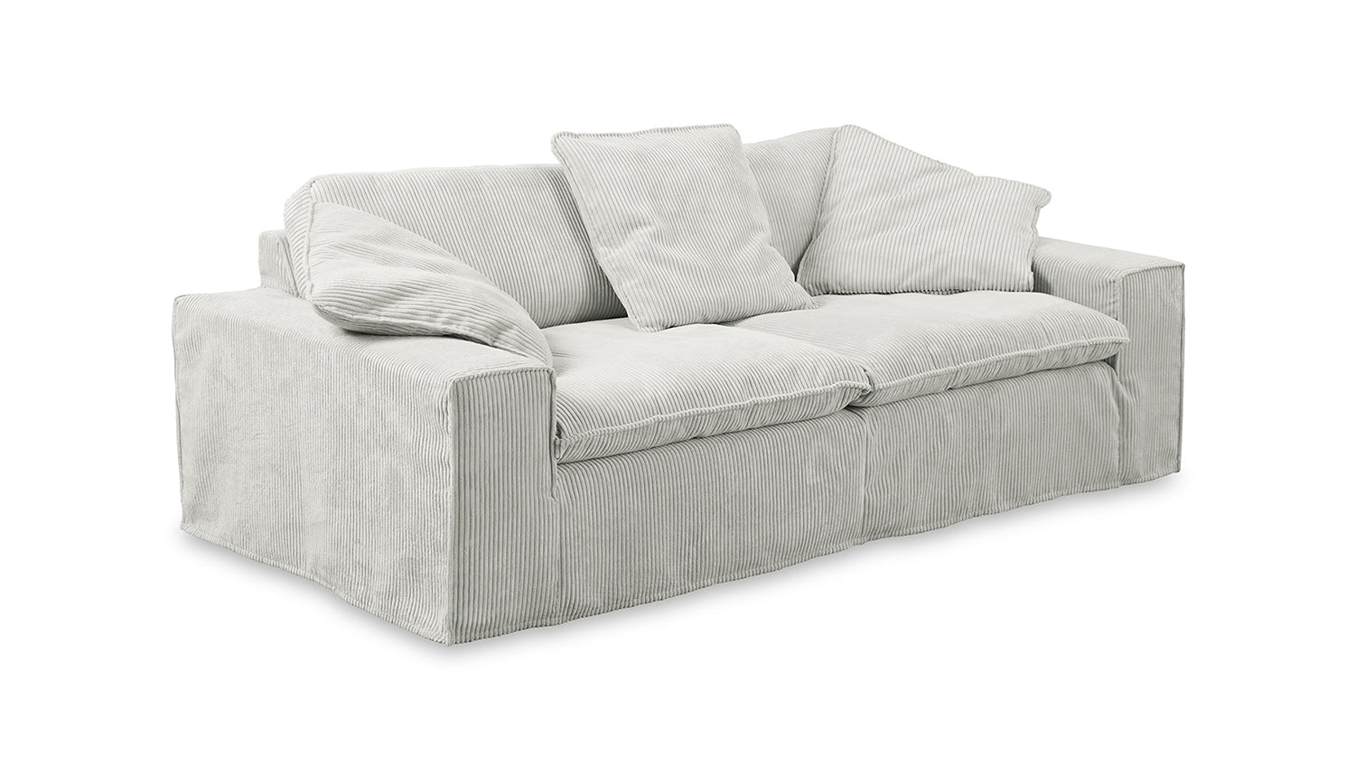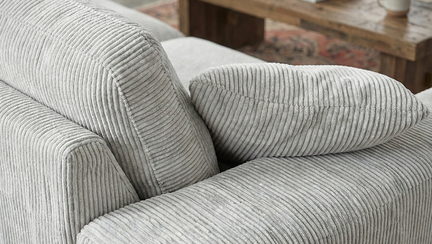 La funda de pana de alta calidad que lo recubre por completo le confiere al sofá una estética atemporal y un tacto agradable. La funda desenfundable permite una fácil limpieza en la lavadora para mantener el sofá fresco y limpio.