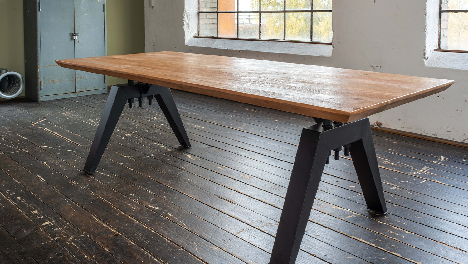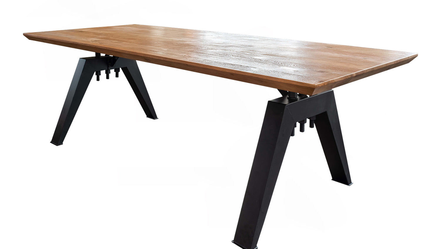La mesa de madera maciza REY de KAWOLA combina materiales de alta calidad con un estilo moderno, lo que la convierte en el centro de atención de cualquier comedor. La superficie del tablero de madera maciza de acacia está cepillada y es de color roble, lo que acentúa a la perfección el veteado natural de la madera. Destaca especialmente el canto suizo, que confiere al tablero un efecto ligero, casi flotante, gracias a su forma biselada: un sutil pero eficaz punto de atracción. El bastidor de base soldado rústico y lacado en negro, de diseño industrial, confiere a la mesa un toque moderno e industrial. Esta acertada combinación de madera natural y metal robusto convierte a la mesa en un elemento de diseño destacado en su comedor. Disponible en longitudes de 200 cm, 220 cm, 240 cm, 260 cm, 280 cm y 300 cm, la mesa ofrece mucho espacio para comidas en común o veladas acogedoras. La Mesa de comedor REY es la elección perfecta para cualquier persona que aprecie el diseño moderno y la mano de obra de alta calidad. Una pieza única para cualquier salón o comedor.