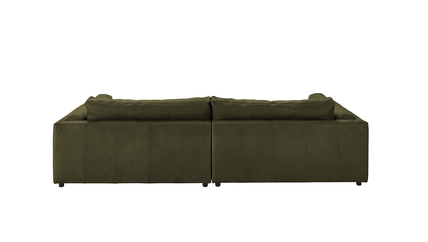 Sofá grande KAWOLA RAINA de cuero verde oliva