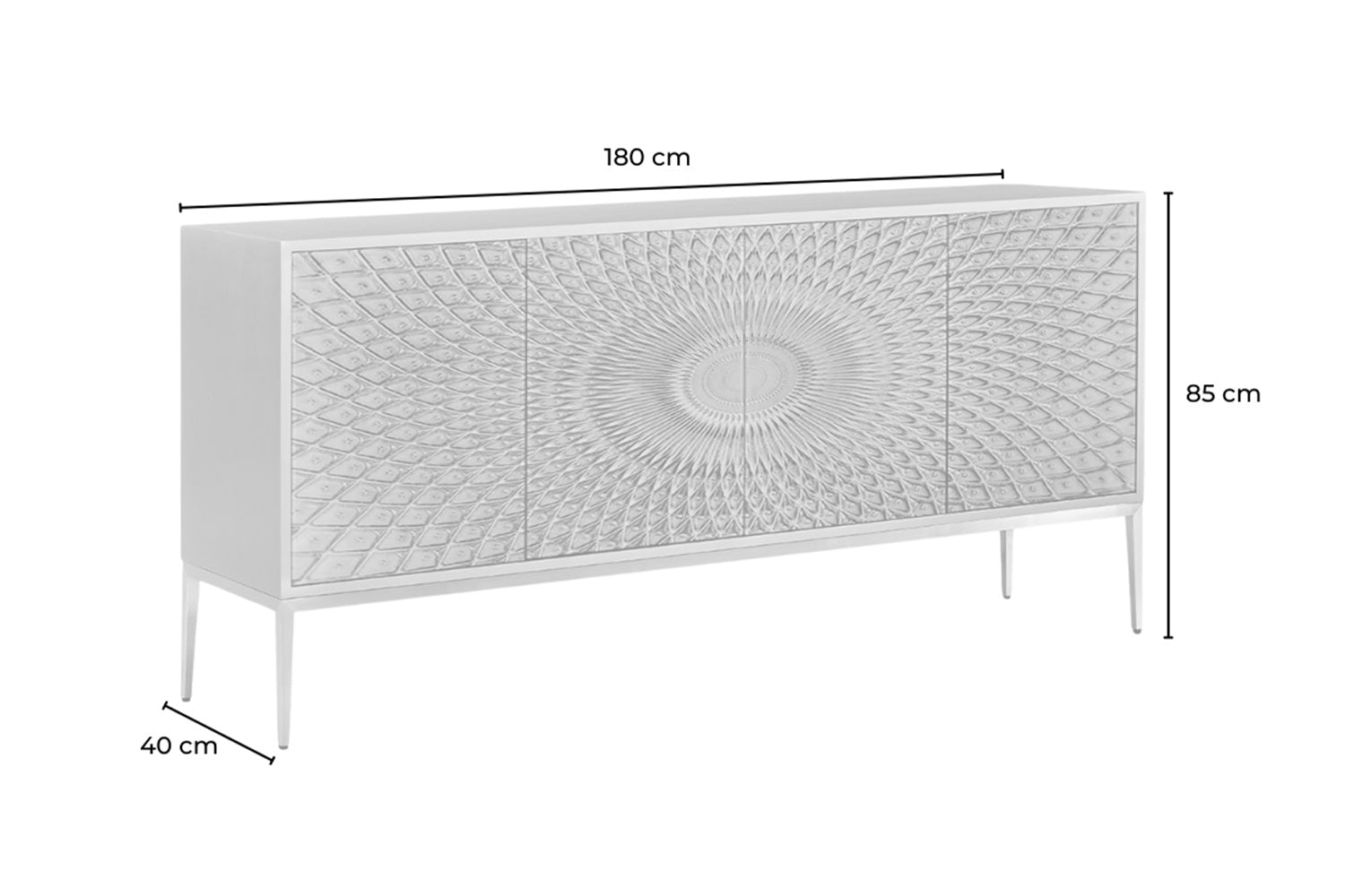 El Aparador KAWOLA LAGO impresiona por su elegante combinación de diseño inusual y funcionalidad práctica. Las puertas están revestidas de cristal templado y presentan decoraciones doradas en forma de ojo de pavo real. Las cuatro puertas ofrecen un amplio espacio de almacenamiento y pueden abrirse sin esfuerzo gracias al cómodo mecanismo de apertura a presión. Los pies de acero inoxidable cepillado de color dorado crean un aspecto moderno y atemporal a la vez que proporcionan estabilidad. Los estantes variables permiten un uso flexible del interior y se adaptan a sus necesidades. El Aparador LAGO de KAWOLA se integra perfectamente en cualquier ambiente y es ideal para los amantes de los muebles inusuales y elegantes. ¡Descubra la combinación perfecta de diseño y funcionalidad con el Aparador LAGO!