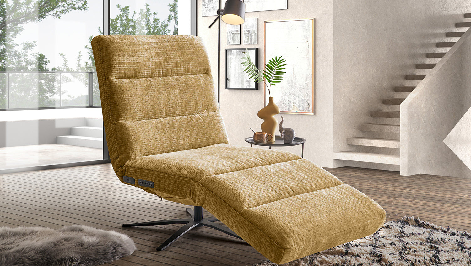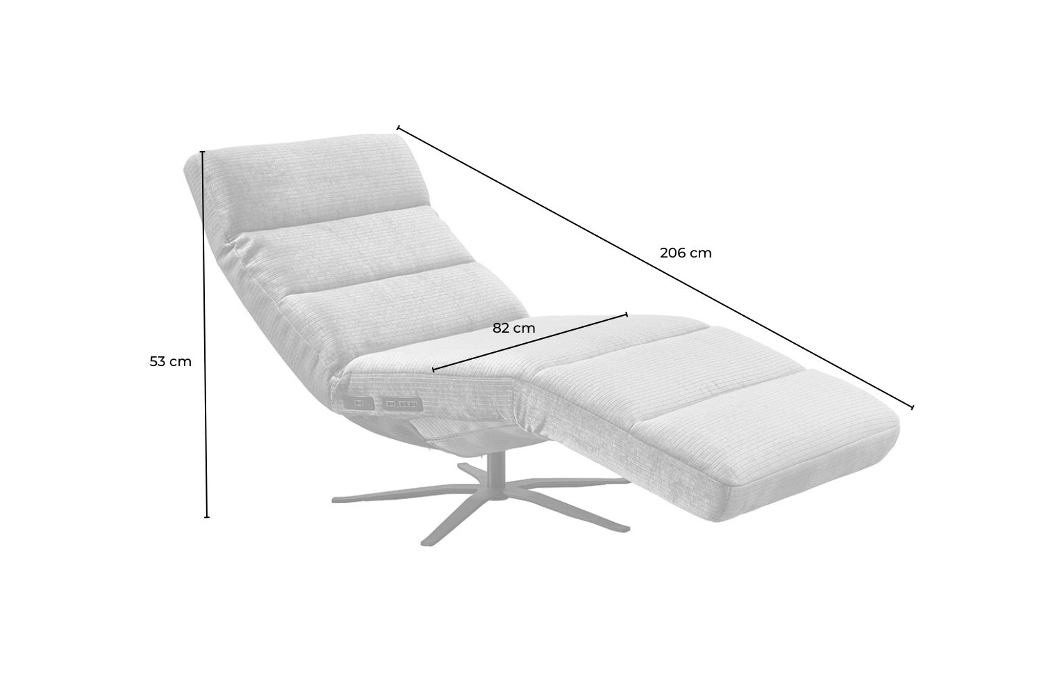 La chaise longue KAWOLA LETICIA combina un diseño elegante con el máximo confort. La elegante Pana con acabado integral confiere a la Chaise longue un aspecto de alta calidad y una agradable sensación al sentarse. Destaca especialmente la base giratoria de 360 grados, que permite la máxima flexibilidad. Gracias a la función de reclinación integrada, puede personalizar LETICIA y relajarse por completo. Cuando la función está totalmente extendida, se alcanza la posición de báscula cardíaca, en la que el corazón y los pies se encuentran en la misma posición. Esta posición optimiza la circulación sanguínea, alivia la presión sobre las piernas y es, por tanto, perfecta para relajarse. Ya sea para leer, ver la televisión o simplemente para desconectar, el sillón reclinable LETICIA es la elección perfecta para los amantes del estilo. Tenga en cuenta que el reposapiés y el respaldo no pueden utilizarse como asiento. El límite de carga para el reposapiés y el respaldo es de 30 kg.