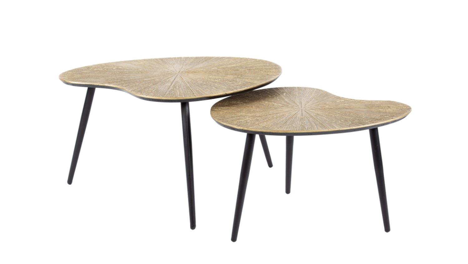 El juego de mesas de centro con forma de riñón TIBALI de KAWOLA está fabricado en metal de color bronce. El tablero está bellamente elaborado y confiere a las mesas un aspecto único. Las mesas pueden colocarse juntas como más te guste. Este conjunto llama la atención. Consta de dos mesas. La mesa más grande tiene una superficie de 71 x 56 cm y una altura de 40 cm, y la mesa más pequeña tiene una superficie de 58 x 47 cm y una altura de 36 cm. Ya sea moderno, rústico o clásico, el juego de mesa de centro TIBALI se adapta sin esfuerzo a cualquier estilo de decoración gracias a su aspecto atemporal. Ideal como centro de mesa con estilo en el salón y una auténtica atracción para los amantes de los muebles de alta calidad.