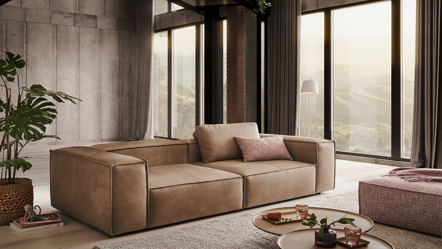 KAWOLA Sofá CARMO 3 plazas cuero topo