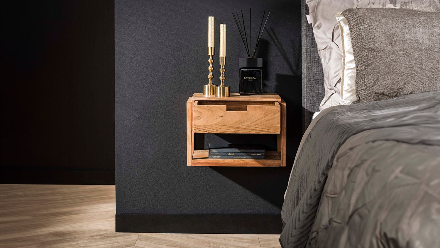• Montaje en pared: crea una sensación de mayor amplitud en el dormitorio