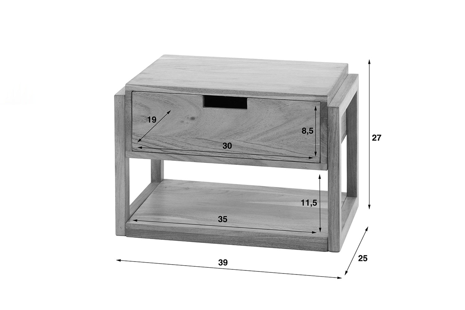 Mesilla de noche KAWOLA HOLYA colgante acacia maciza natural 1 cajón