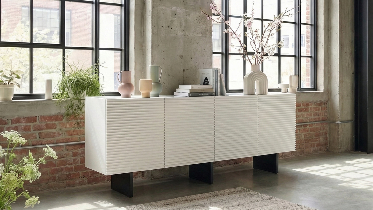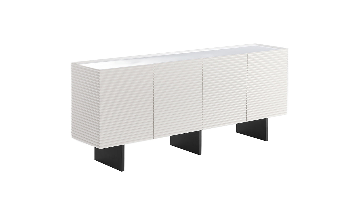 El aparador LYNN de KAWOLA combina un diseño moderno con una estructura frontal llamativa y líneas limpias. Su superficie de acabado refinado le confiere al mueble una profundidad especial y lo convierte en un elegante elemento decorativo en el salón o el comedor. El cuerpo de madera se complementa con una elegante encimera de cristal, que aporta al diseño un toque contemporáneo y de alta calidad. La estructura metálica con recubrimiento en polvo garantiza la estabilidad y subraya el carácter purista del Aparador.