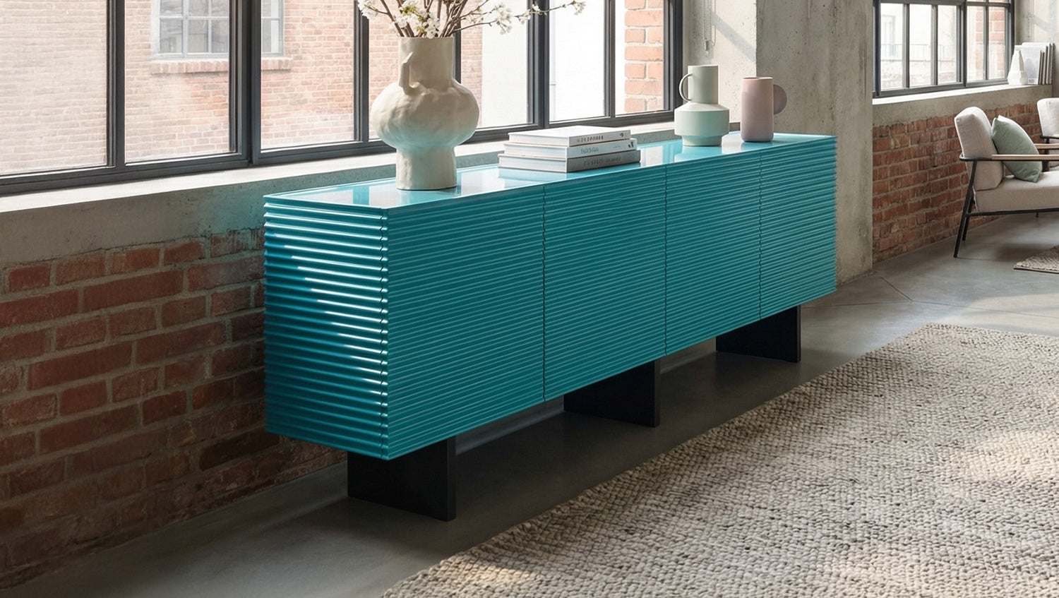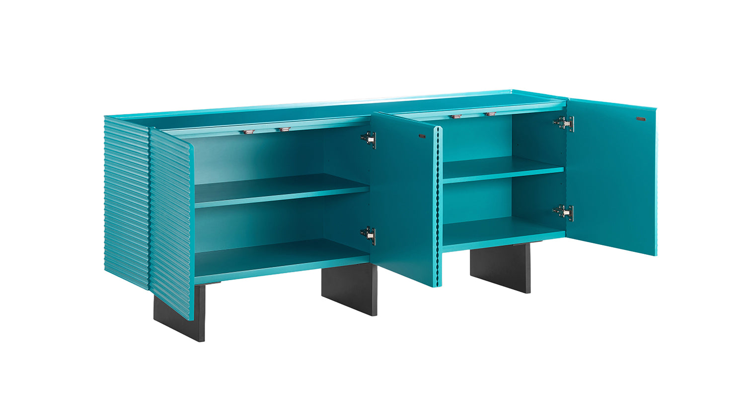 Detrás de cuatro puertas, LYNN ofrece un amplio espacio de almacenamiento con un total de cuatro compartimentos. Los estantes se pueden colocar de forma flexible en tres alturas diferentes, cada una con una separación de 7 cm, para que pueda adaptar el espacio interior a sus necesidades individuales. El mecanismo integrado de tirador de dedo permite una apertura cómoda, mientras que las bisagras de cierre suave garantizan un cierre suave y silencioso. De este modo, el aparador combina un aspecto extraordinario con una funcionalidad bien pensada.
