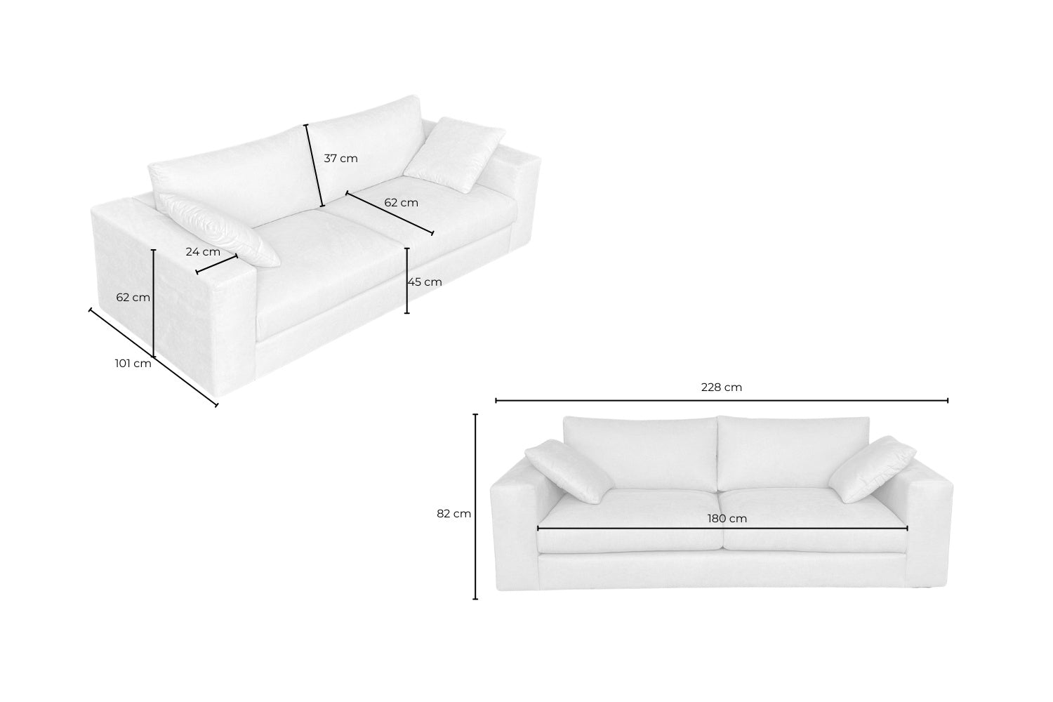 • Altura del asiento 45 cm y profundidad del asiento 62 cm para sentarse relajadamente