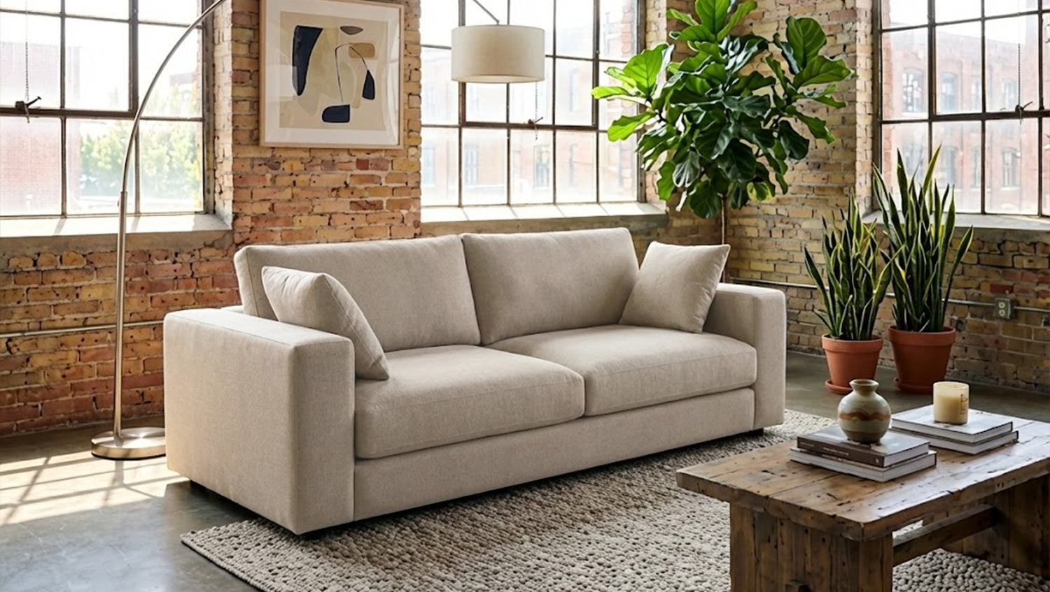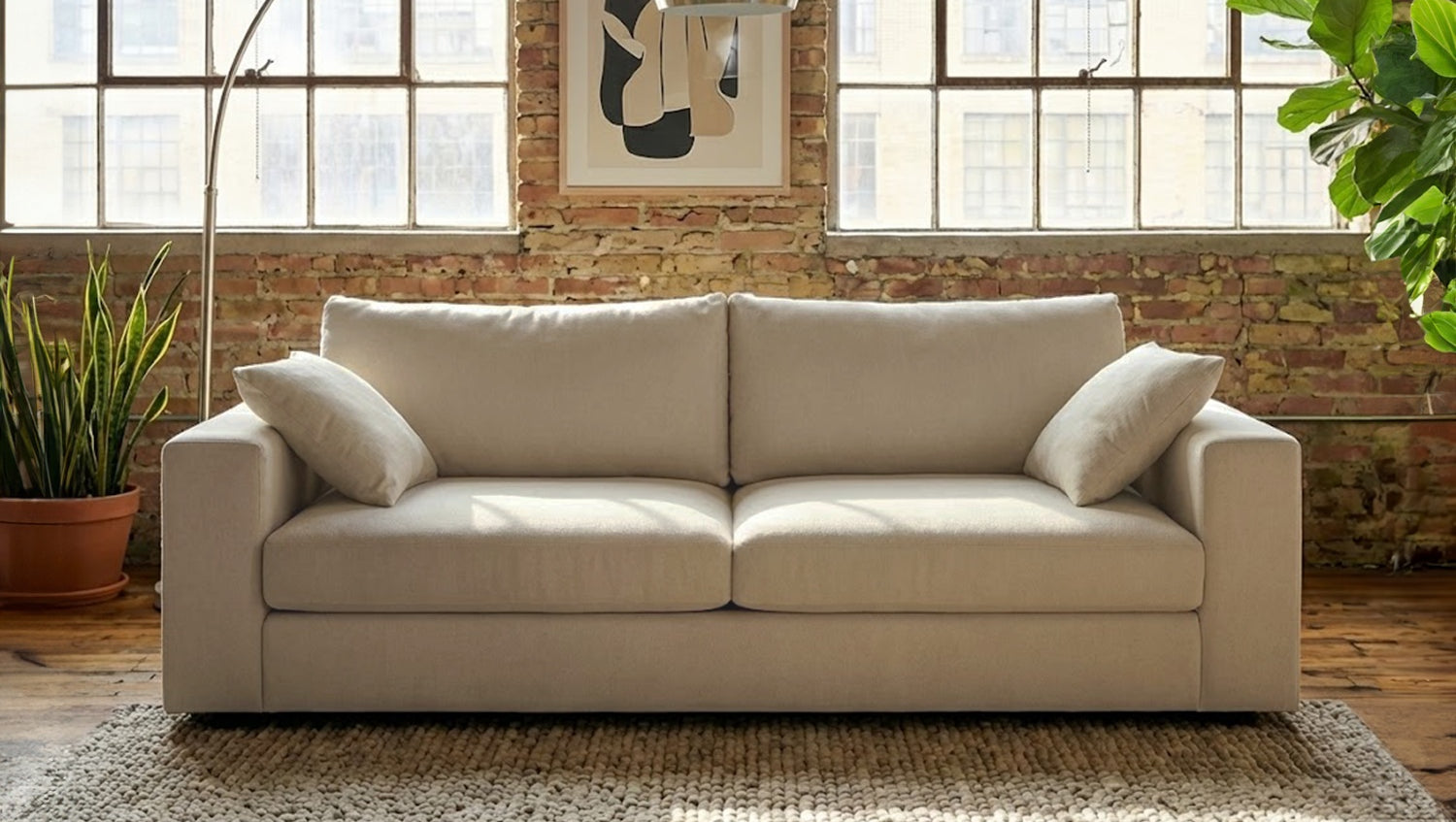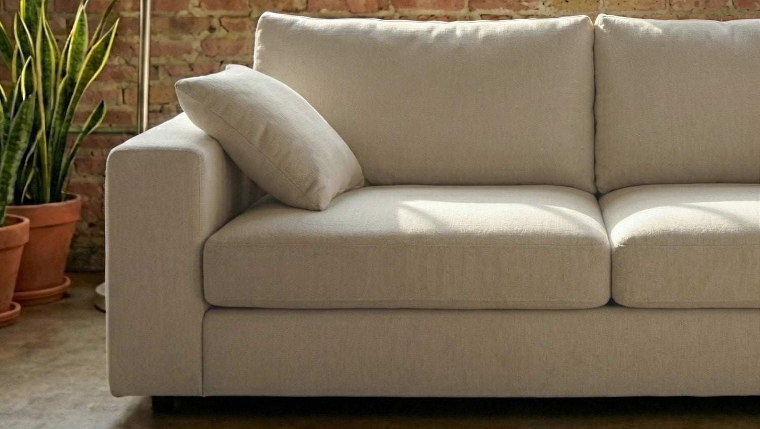 1 sofá, 2 cojines decorativos
