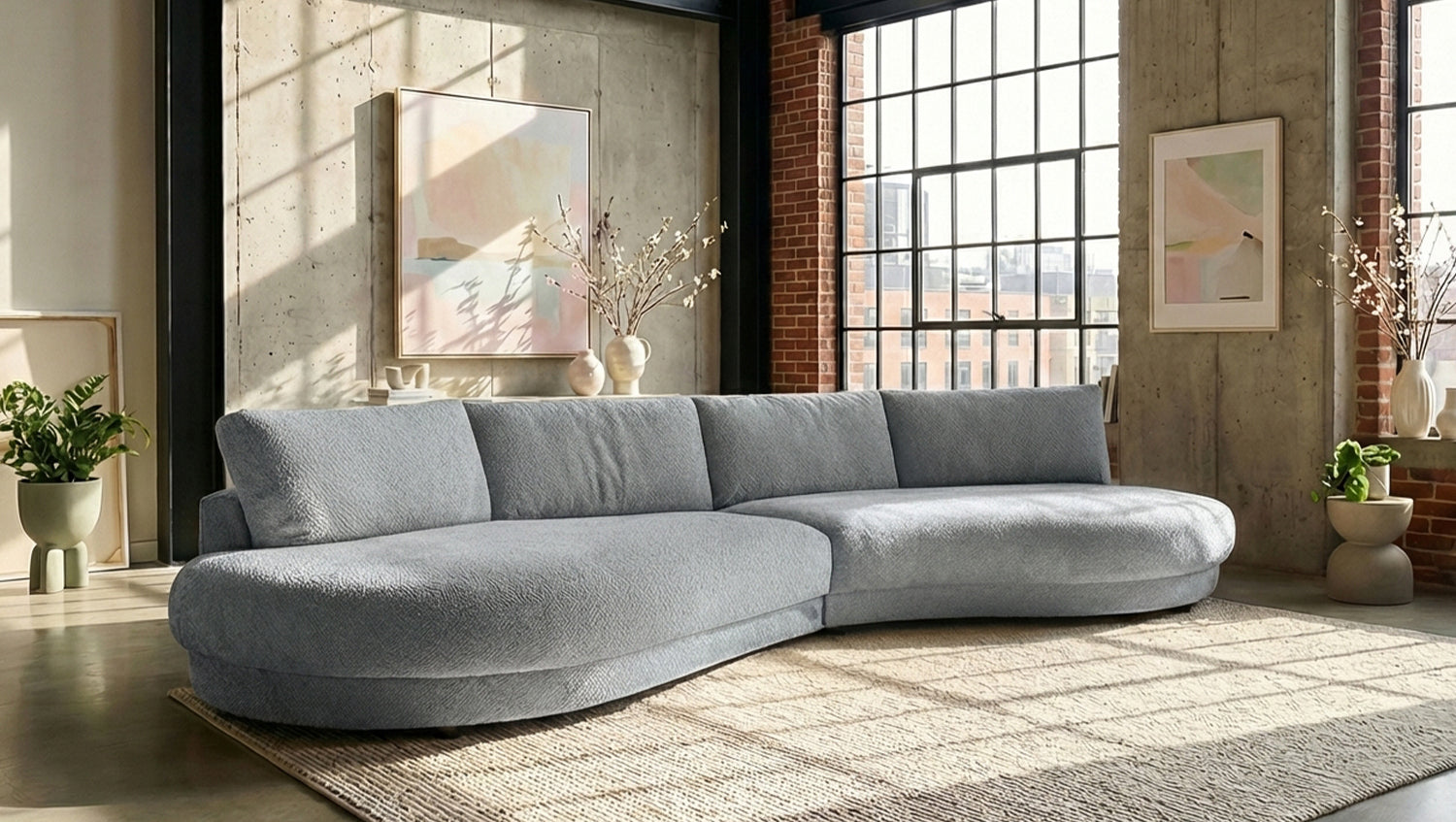 El sofá extra ancho PADANA de KAWOLA es una auténtica pieza estrella para los salones modernos. Con su impresionante anchura de 410 cm y una cómoda profundidad de 166 cm, ofrece un espacio extraordinario para relajarse, descansar y pasar tiempo en compañía. Su forma orgánica y suavemente curvada confiere al sofá un aspecto suave y acogedor, convirtiéndolo en el centro de atención de cualquier salón. El tapizado de chenilla de alta calidad no solo convence a la vista, sino también al tacto: su textura recuerda discretamente a la lana de oveja y aporta un aspecto especialmente acogedor y cálido. Al mismo tiempo, el material se caracteriza por una formación de bolitas muy reducida, lo que garantiza una superficie siempre bonita incluso con un uso intensivo. Gracias a su tapizado integral, el PADANA también se puede colocar libremente en cualquier punto de la habitación. En su interior, una estructura estable de madera maciza garantiza durabilidad y estabilidad. El asiento está equipado con muelles ondulados de acero de elasticidad duradera y se complementa con espuma de poliuretano de alta calidad. Esta combinación garantiza un confort de asiento agradable con un soporte óptimo. El sofá extra ancho PADANA combina dimensiones generosas, materiales de alta calidad y un diseño atemporal en un mueble que redefine el concepto de comodidad. Ideal para todos aquellos que aprecian un espacio extraordinario y una comodidad con estilo.