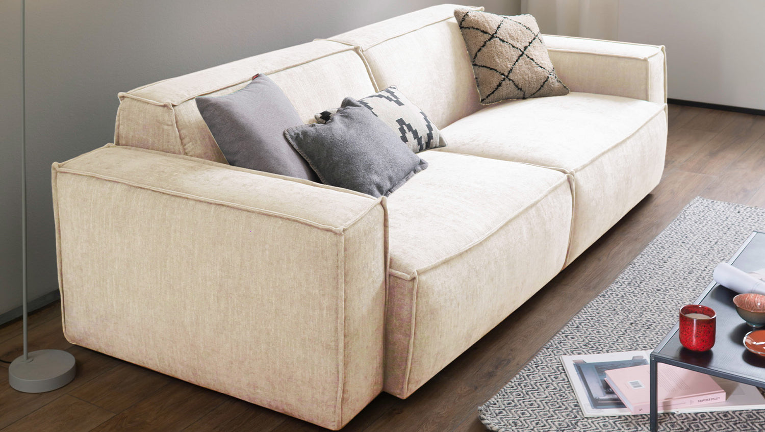 KAWOLA Grupo de asientos SAMU 3 plazas 2 plazas tejido chenilla crema