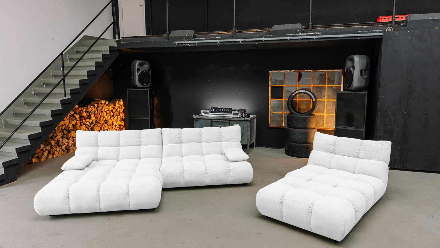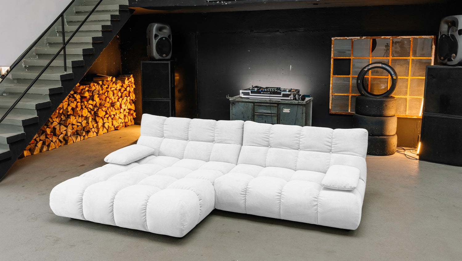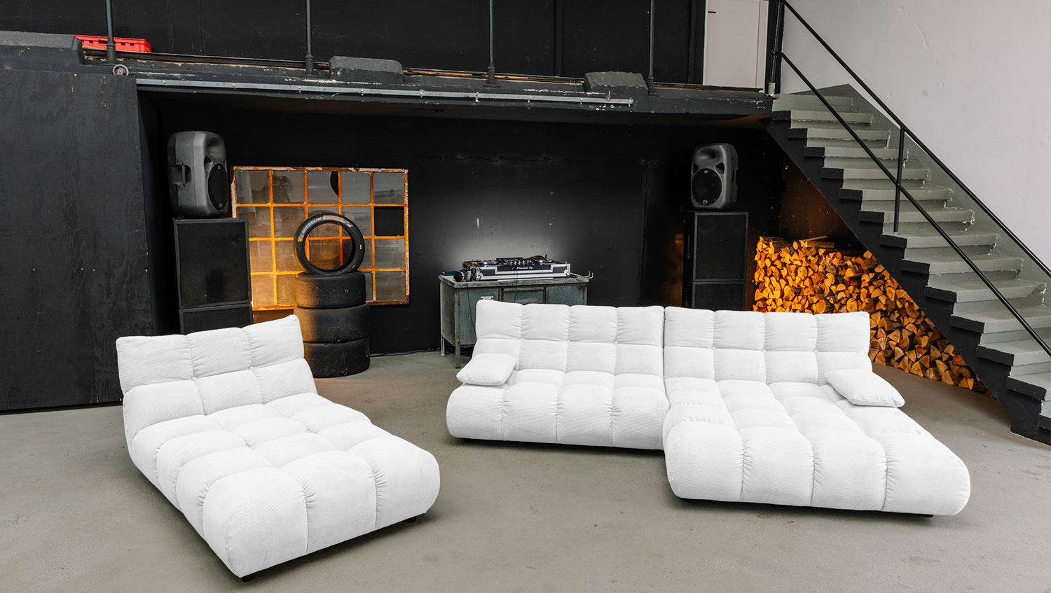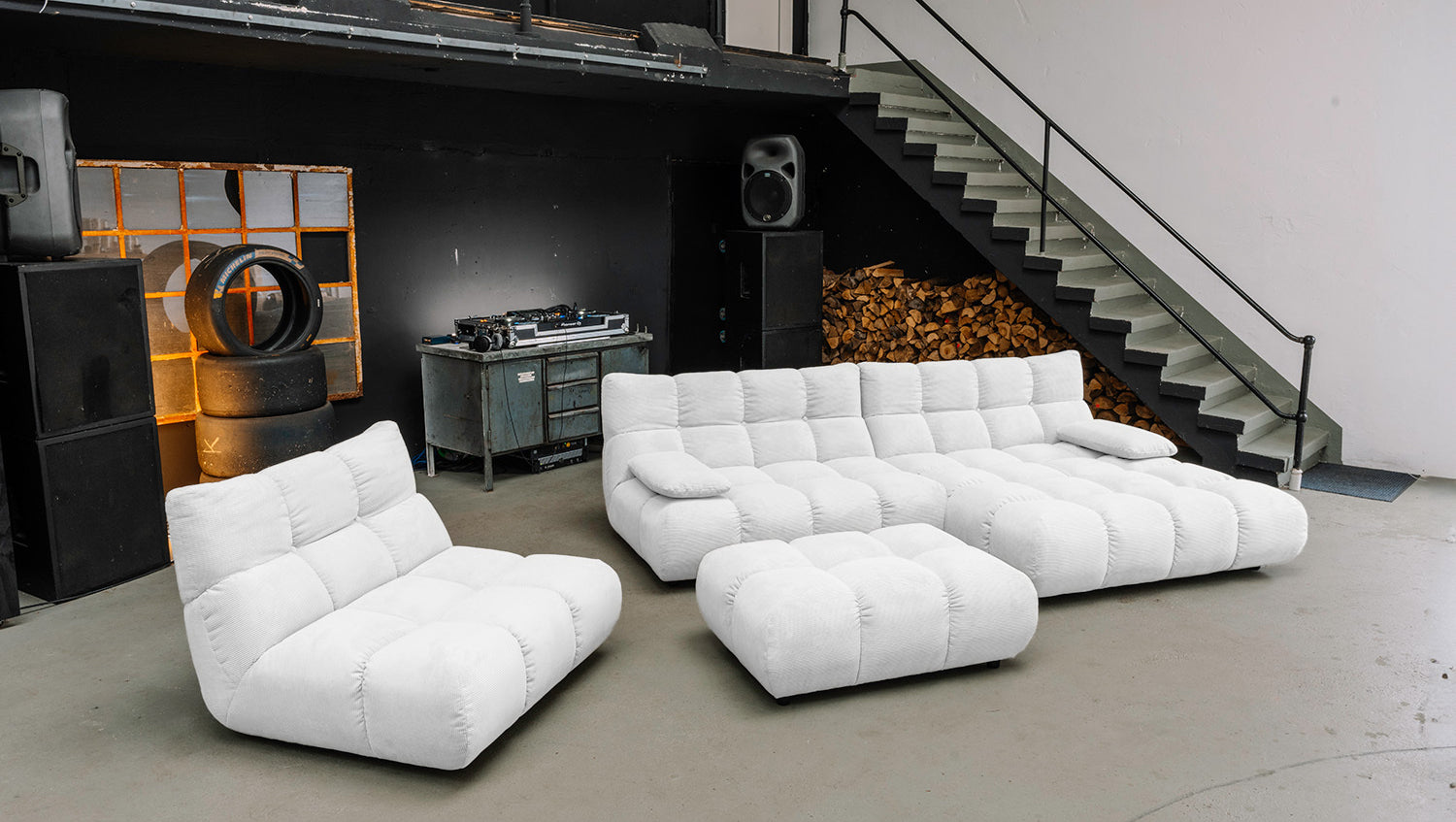 KAWOLA grupo de asientos VIVIEN sofá esquinero sillón giratorio Banco Pana fina blanco