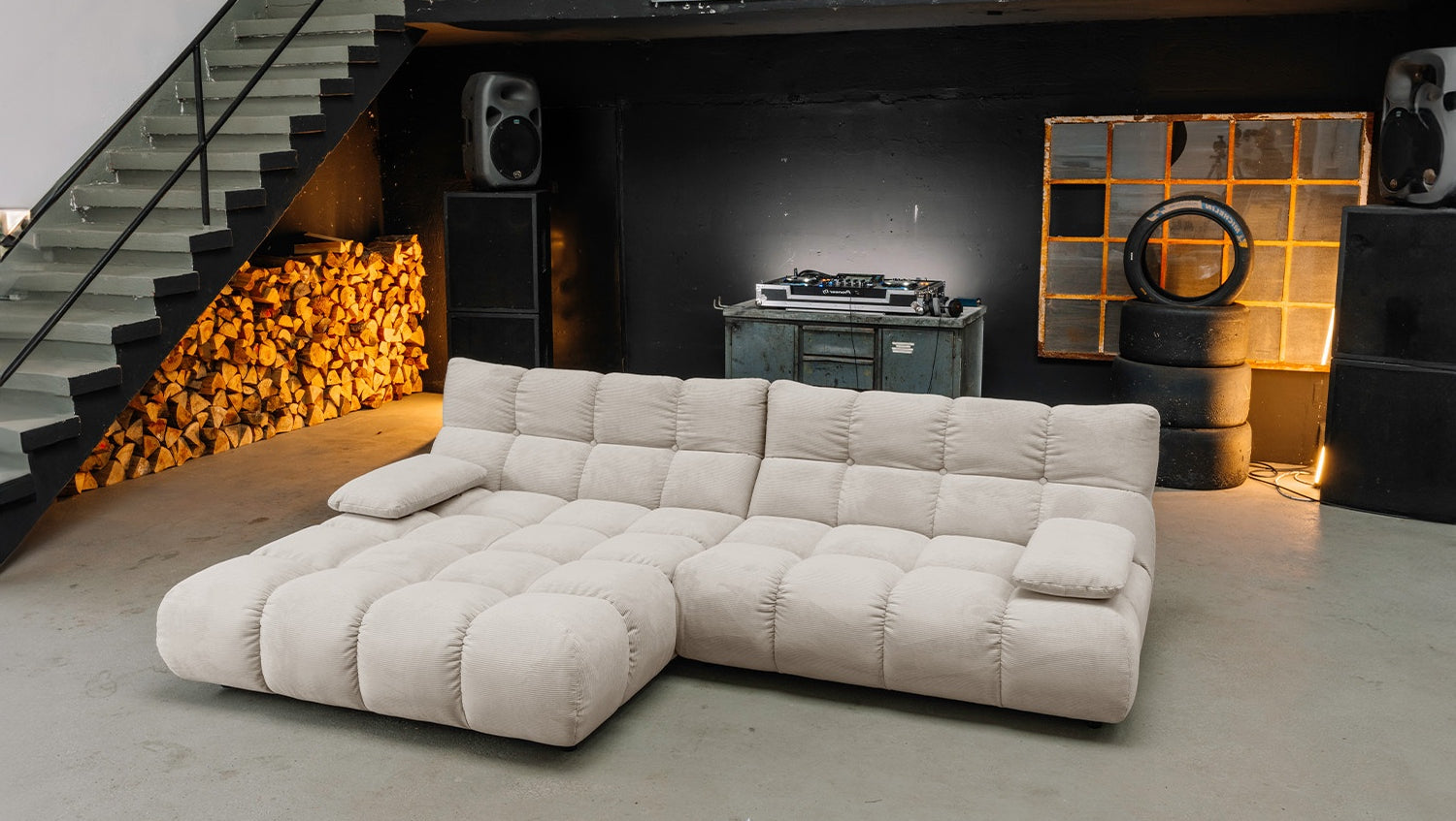 • USO FLEXIBLE - sofá para relajarse, Puf como almacenaje o asiento, sillón giratorio con función 360