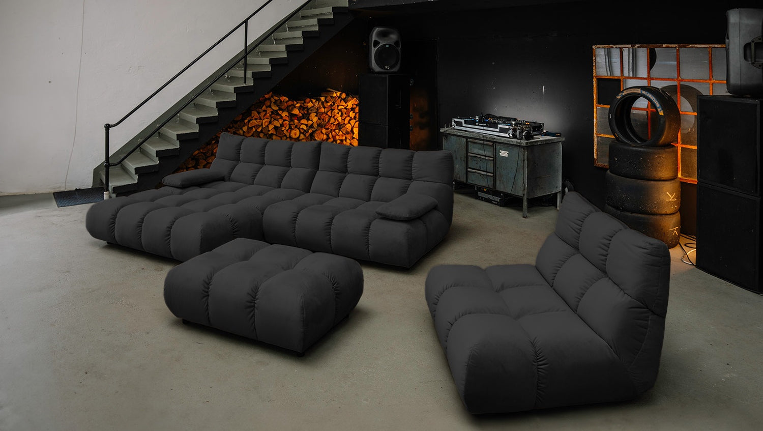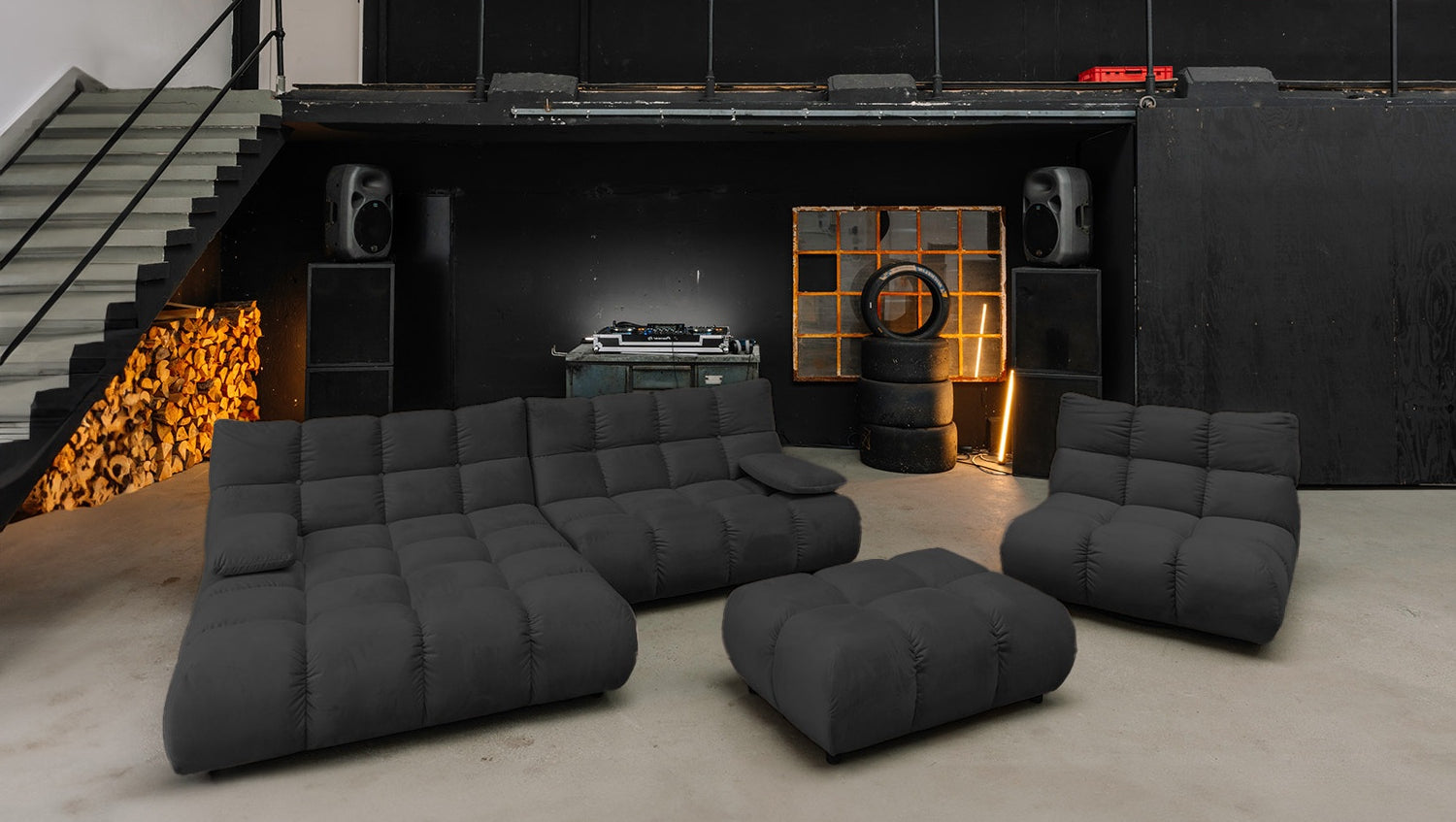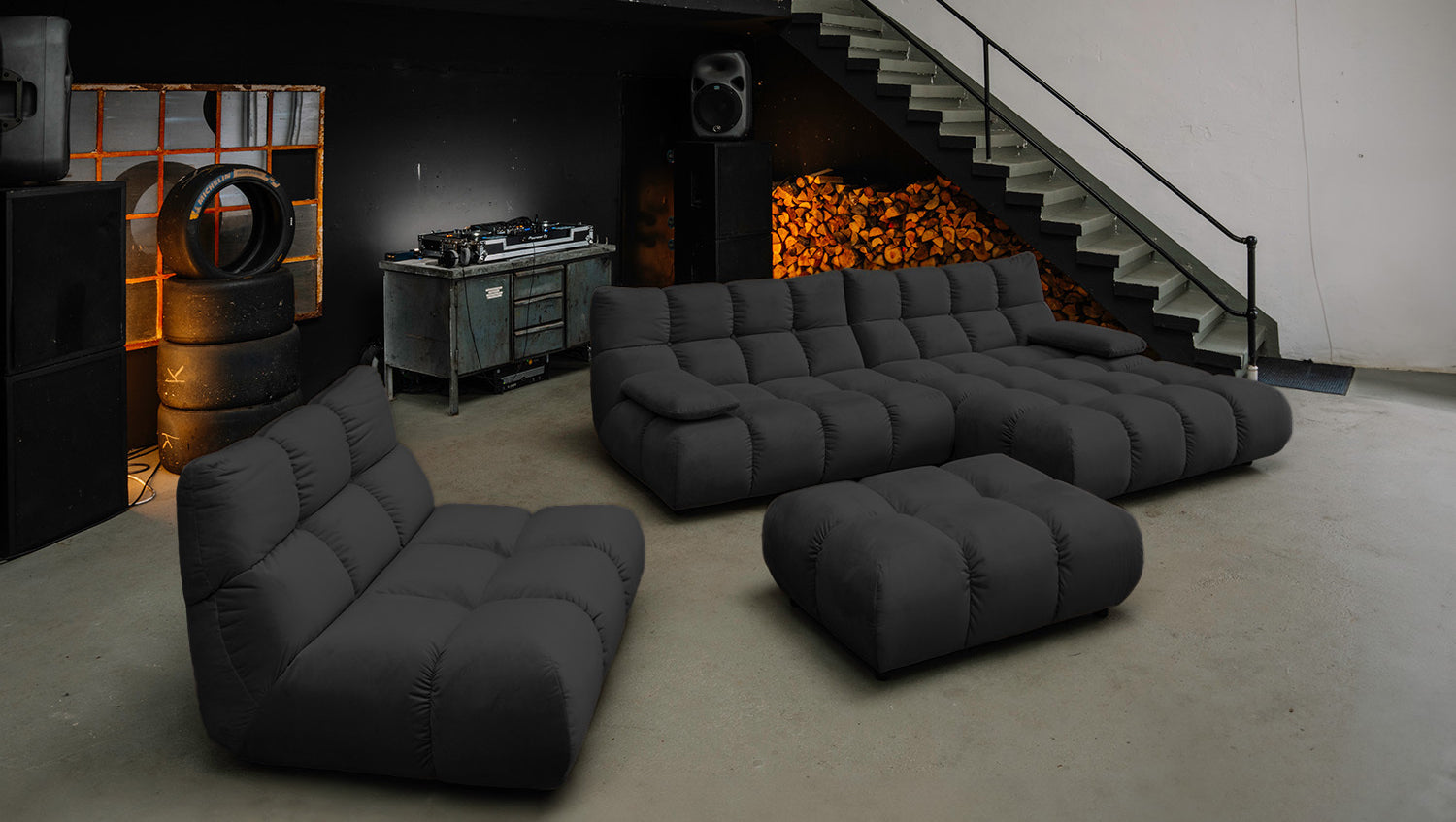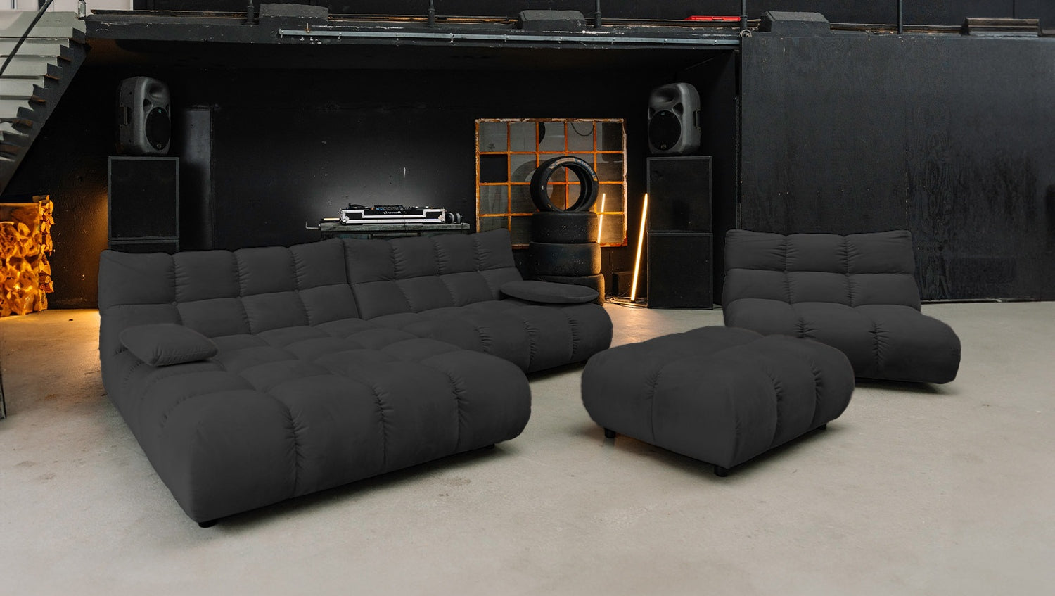 • FUNCIONES PRÁCTICAS - sofá para relajarse, Puf como complemento flexible, silla giratoria con función 360
