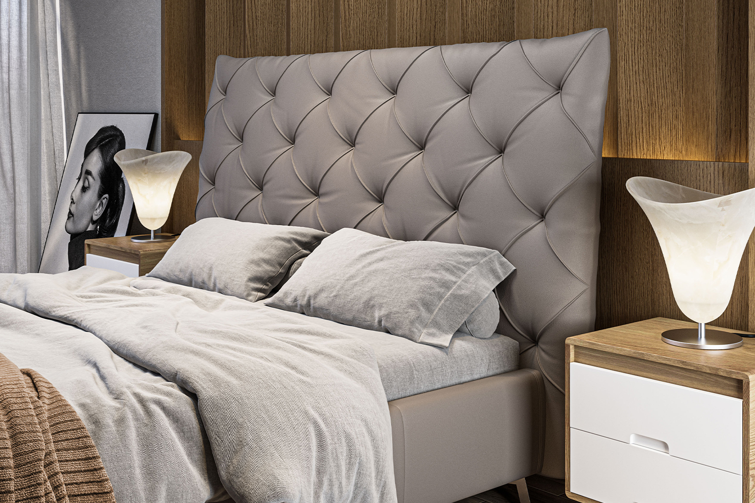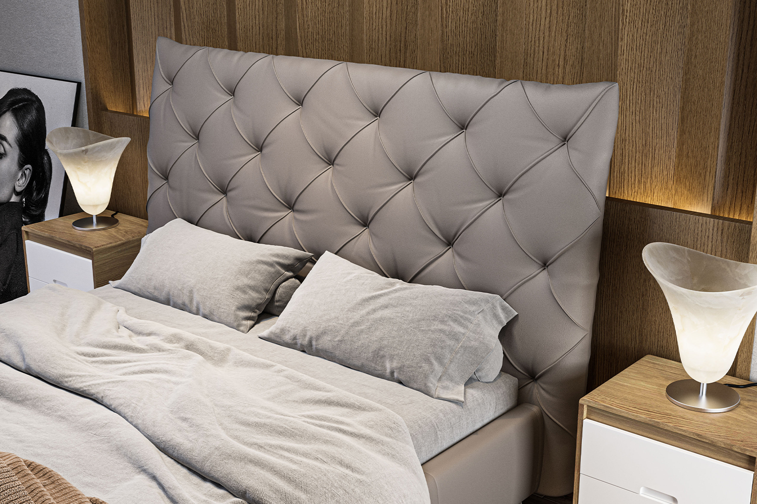 Elegantes Kopfteil mit Absteppungen im Chesterfield-Stil