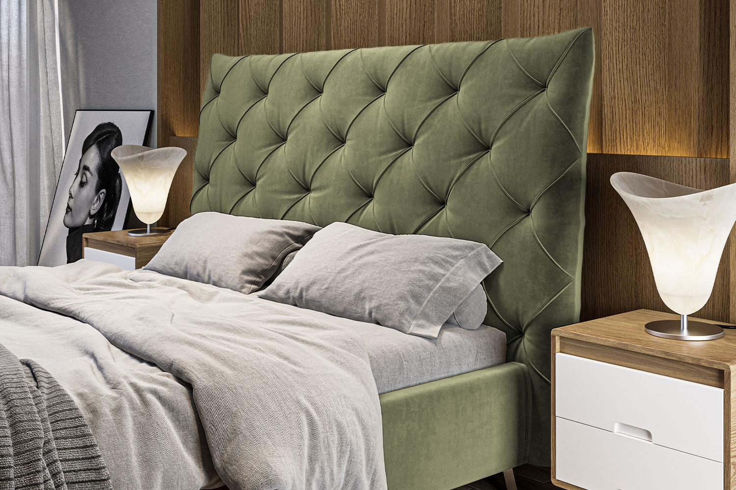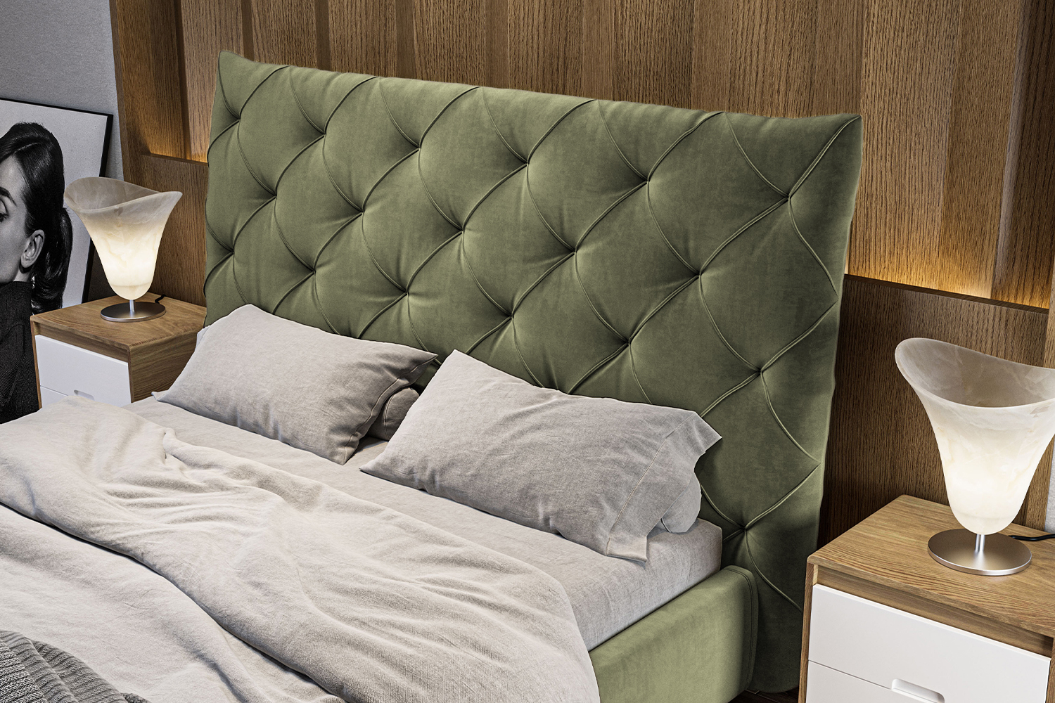 Elegantes Kopfteil mit Absteppungen im Chesterfield-Stil