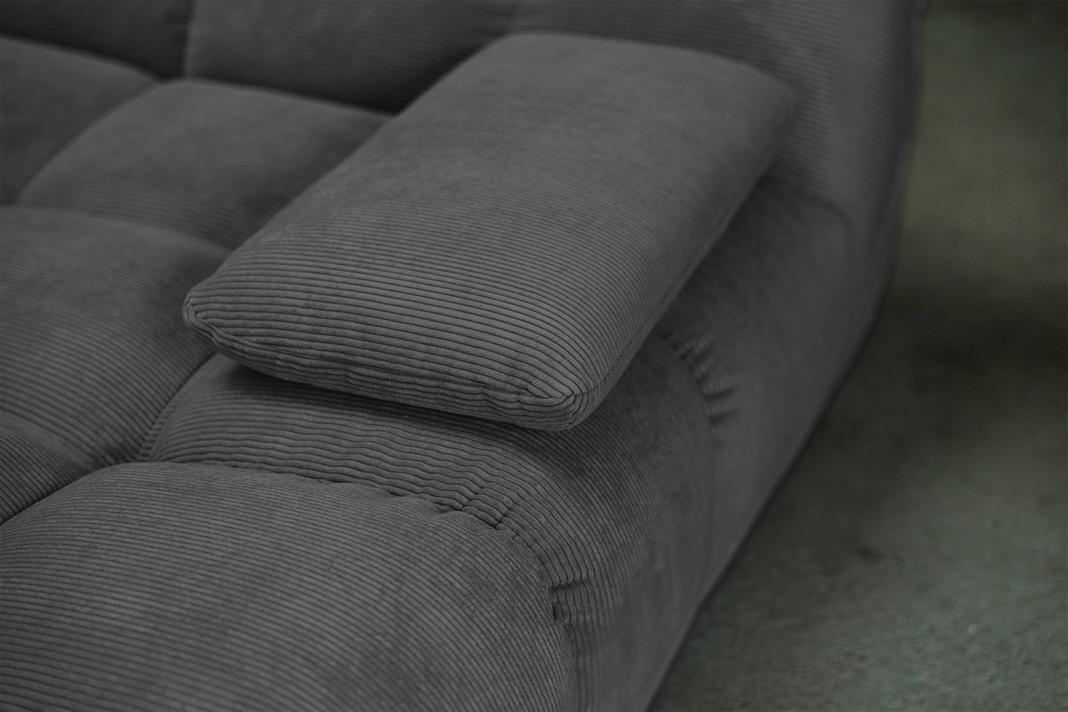 Der Bezug aus hochwertigem Feincord begeistert mit seiner weichen Haptik und verleiht dem Sofa einen trendigen, wohnlichen Look. Gleichzeitig ist das Material strapazierfähig und pflegeleicht – ideal für den Alltag.