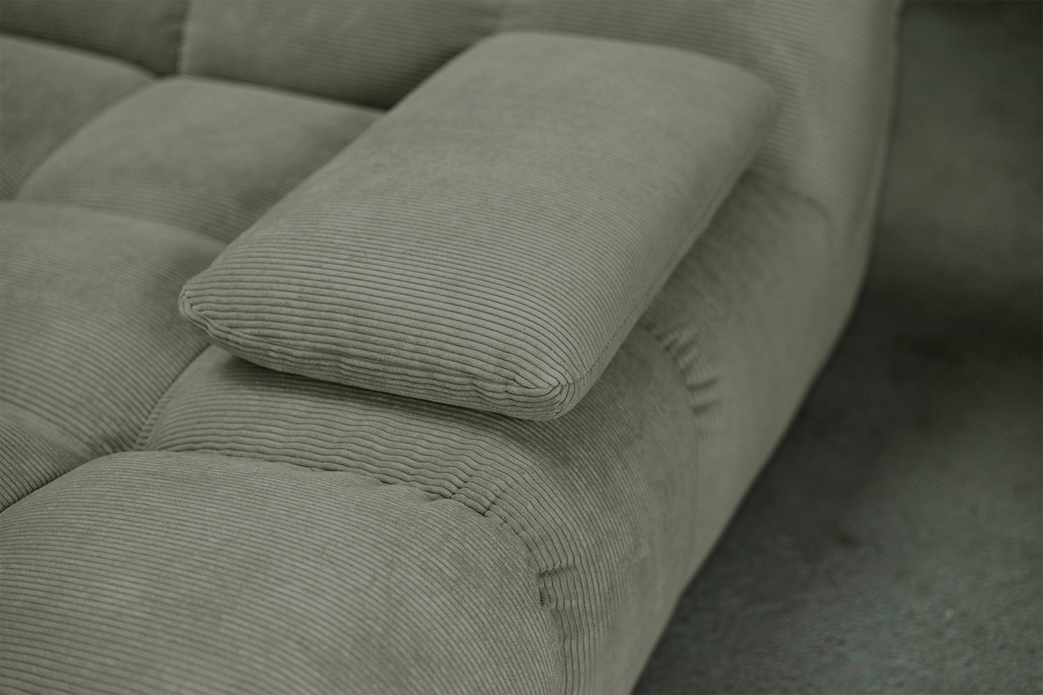 Der Bezug aus hochwertigem Feincord begeistert mit seiner weichen Haptik und verleiht dem Sofa einen trendigen, wohnlichen Look. Gleichzeitig ist das Material strapazierfähig und pflegeleicht – ideal für den Alltag.