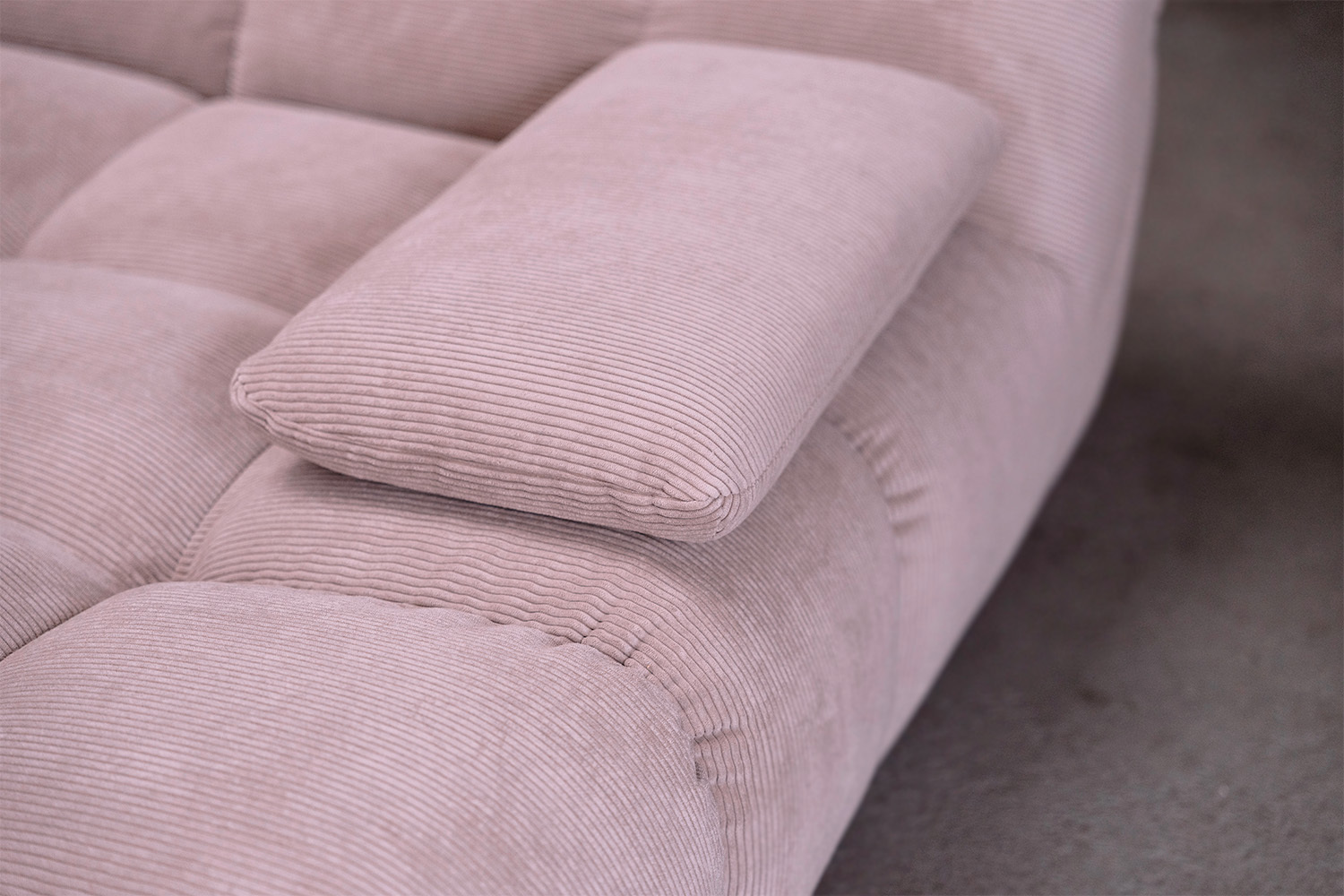 Der Bezug aus hochwertigem Feincord begeistert mit seiner weichen Haptik und verleiht dem Sofa einen trendigen, wohnlichen Look. Gleichzeitig ist das Material strapazierfähig und pflegeleicht – ideal für den Alltag.