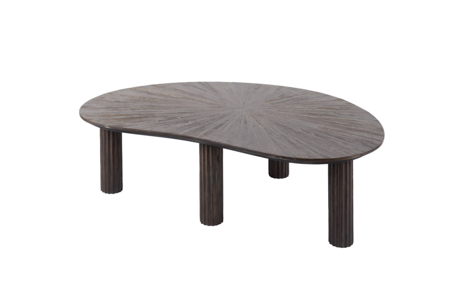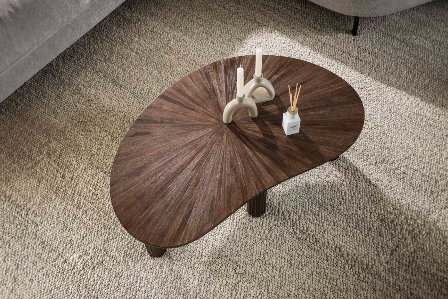 Der Couchtisch INKA von KAWOLA bringt Natur und modernes Design in perfekte Balance. Der Tisch wurde nierenförmig gestaltet und aus hochwertigem Teakholz in einer modernen dunkelbraunen Farbe gefertigt. Diese Kombination sorgt dafür, dass diese Tische sowohl Stil als auch Haltbarkeit ausstrahlen. Die einzigartigen Beine mit Wellenmuster und das elegante Design der Tischplatte sorgen für einen verspielten und doch raffinierten Look. Ob im Wohnzimmer, in der Lounge oder als stilvolle Ablage – der Couchtisch INKA passt in jedes Zuhause und setzt ein echtes Design-Statement.