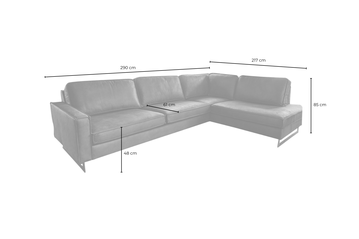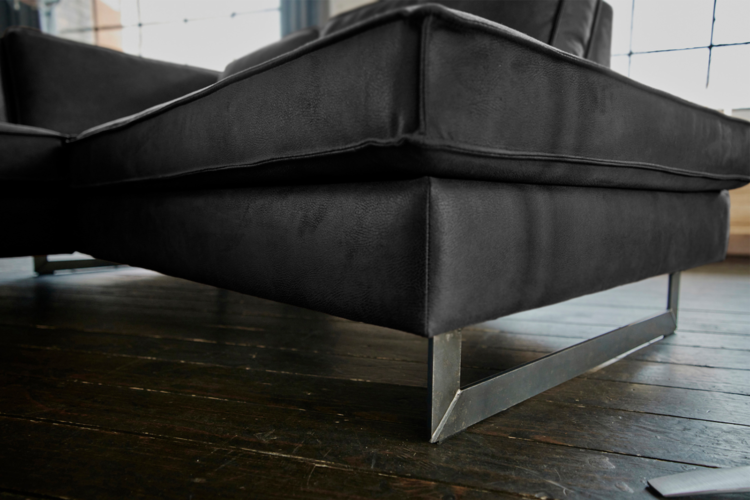 Extreme Robustheit ist durch das massive Holzgestell ebenso gegeben wie eine komfortable und legere Polsterung für ein weiches Sitzvergnügen. Trotz seiner großflächigen Maße lässt sich das Ecksofa in allen Räumlichkeiten flexibel positionieren und stellt damit jederzeit ein optisches Highlight dar.