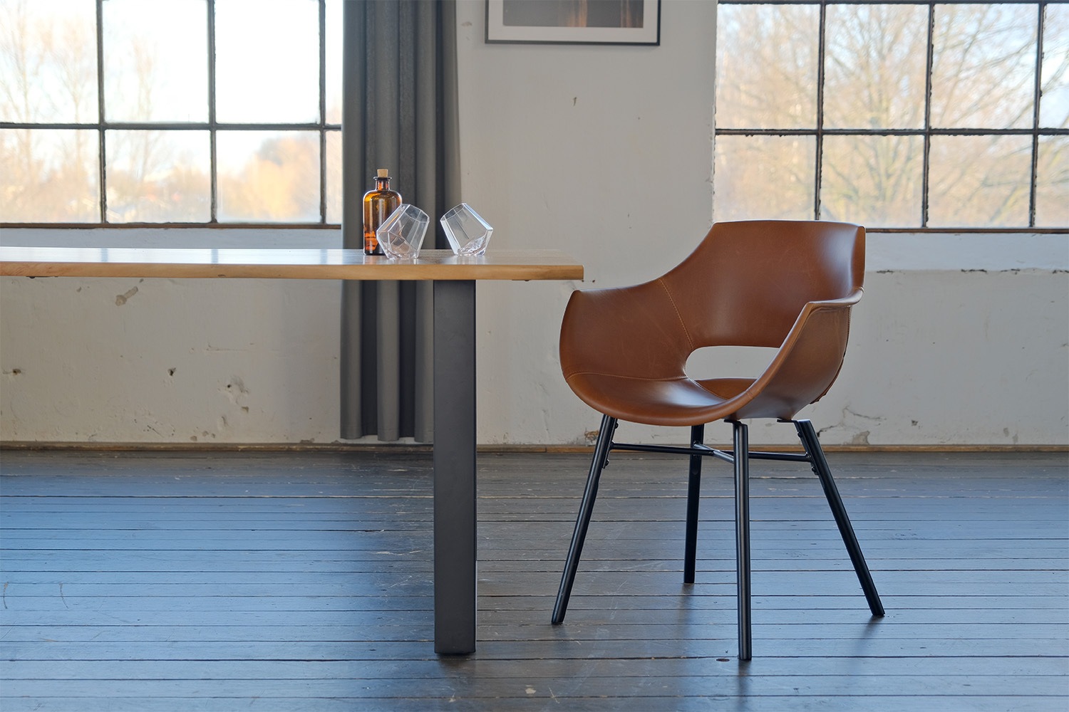 Stuhl ZAJA: mit cognacfarbenem Kunstlederbezug