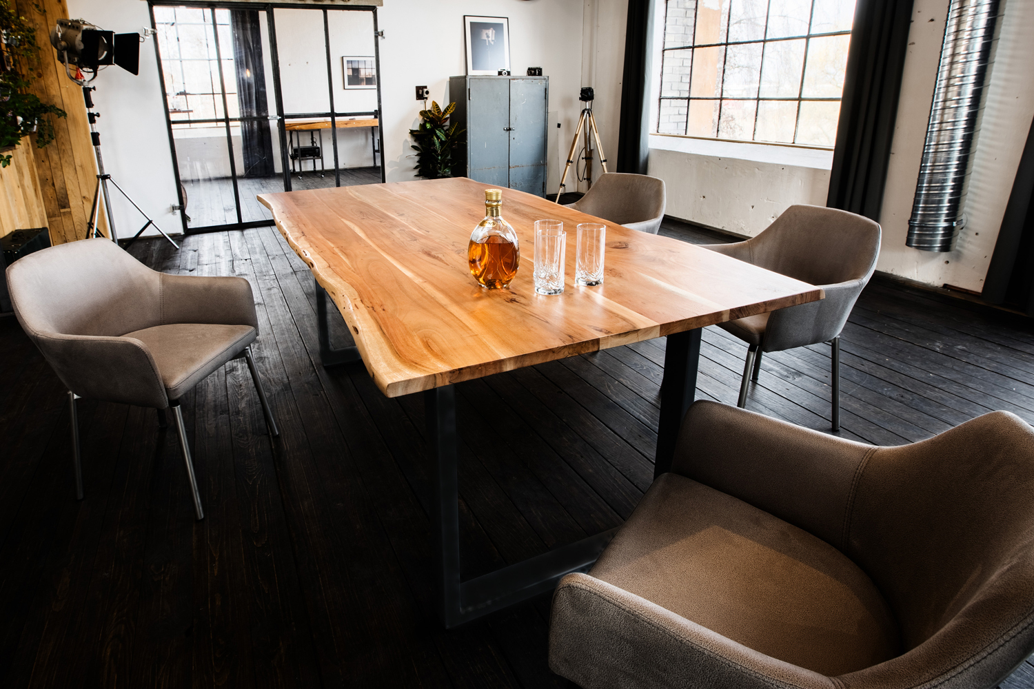 Wunderschöner Esstisch, mit Massivholzplatte, der sich wunderbar in das moderne, aber auch das rustikal gemütliche Wohnambiente integrieren lässt. Besonderes Highlight des Esstisches sind die Tischkanten, die den natürlichen Formen eines Baumes entsprechen. Das kubische Metallgestell bildet hierzu einen gelungenen Kontrast, der dem Massivholz Esstisch einen Hauch industriellen Charme verleiht.WICHTIGER HINWEIS