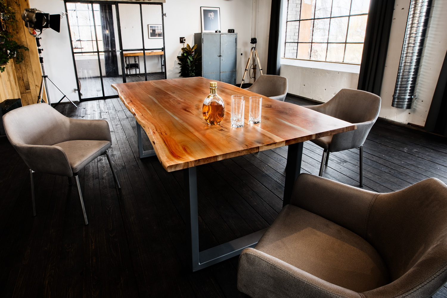 Wunderschöner Esstisch, mit Massivholzplatte, der sich wunderbar in das moderne, aber auch das rustikal gemütliche Wohnambiente integrieren lässt. Besonderes Highlight des Esstisches sind die Tischkanten, die den natürlichen Formen eines Baumes entsprechen. Das kubische Metallgestell bildet hierzu einen gelungenen Kontrast, der dem Massivholz Esstisch einen Hauch industriellen Charme verleiht.WICHTIGER HINWEIS