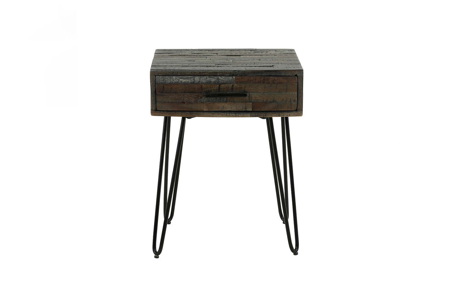 Der Nachttisch MESA von KAWOLA überzeugt durch sein stilvolles Design aus grau gewaschenem Akazienholz. Die in Streifen eingelegte Holzstruktur verleiht ihm eine edle Optik, die an Teakholz erinnert. Ausgestattet mit praktischen Schubladen und stabilen Metallbeinen in dunkler Ausführung, verbindet dieses Möbelstück Funktionalität mit modernem Charme. Der Nachttisch MESA ist ein echter Blickfang für Ihr Schlafzimmer, der mit seiner rustikalen Ausstrahlung in jedem Interieur eine gute Figur macht.Produktdetails