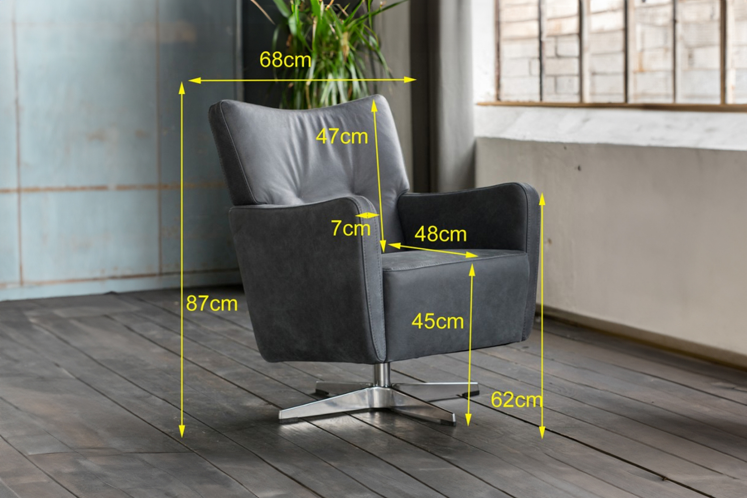 Bedingt durch die Gradlinigkeit und der Wahl des Bezuges kann der Drehsessel in jedes Wohnambiente oder auch Arbeitszimmer integriert werden.
