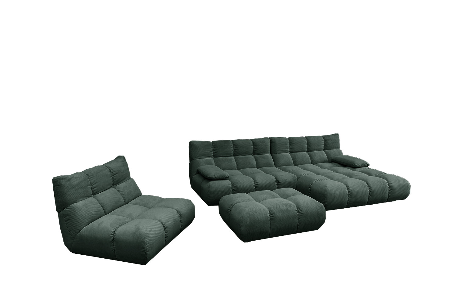 Produktinformationen "KAWOLA Sitzgruppe VIVIEN Ecksofa Drehsessel Hockerbank Feincord grün"