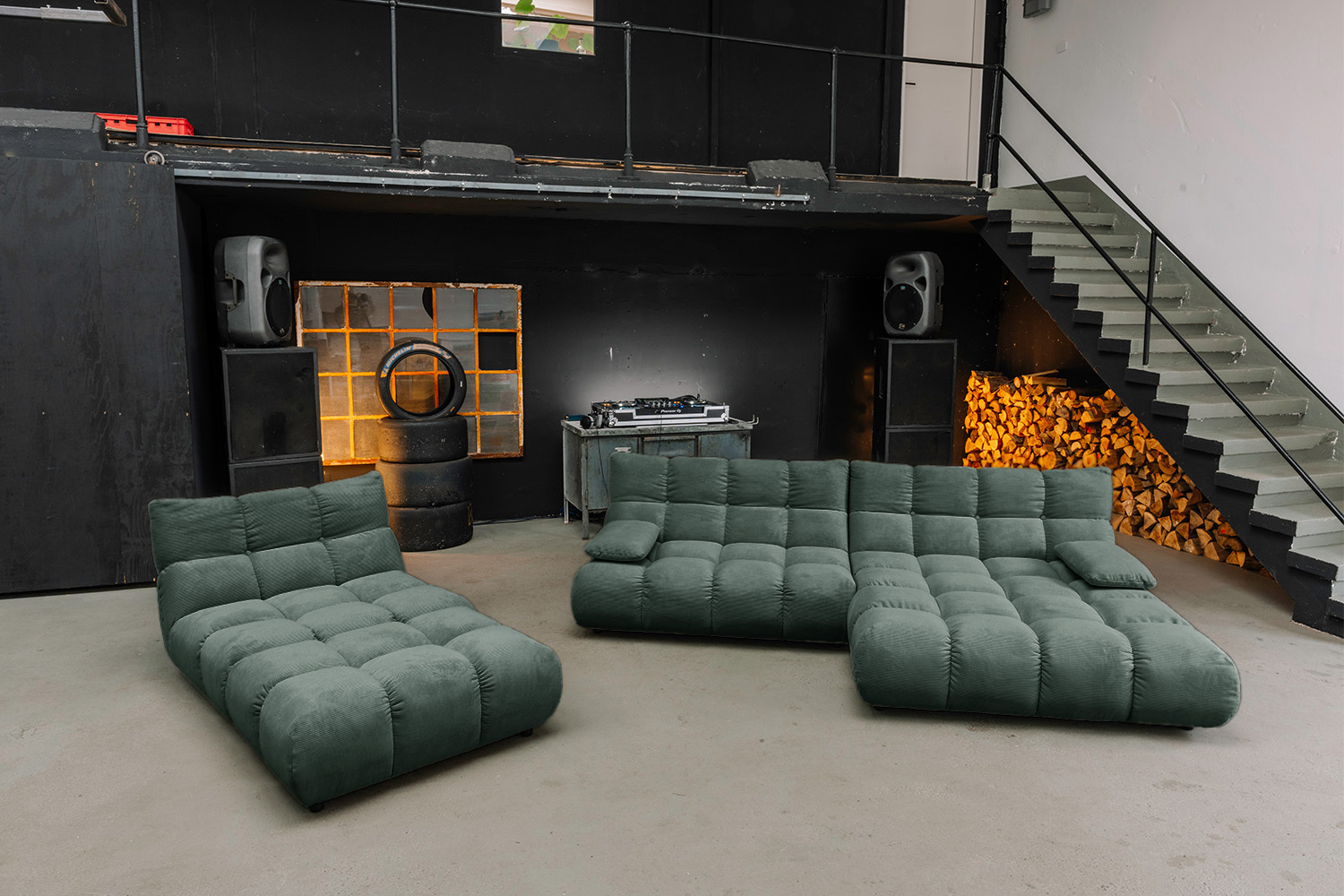 • FLEXIBEL NUTZBAR – Sofa zum Relaxen, Hocker als Ablage oder Sitzplatz, Drehsessel mit 360°-Funktion