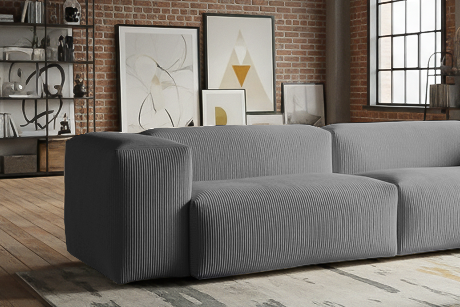 Das 4-Sitzer Sofa KAWOLA CELESTE vereint großzügige Dimensionen mit einem modernen, skulpturalen Design. Mit einer beeindruckenden Breite von 302 cm, einer Tiefe von 114 cm und einer Höhe von 72 cm bietet CELESTE viel Raum für entspannte Stunden. Der weiche Cordbezug verleiht dem Sofa eine besonders einladende Haptik und einen wohnlich-lässigen Charakter. Die feine Struktur des Stoffs sorgt für einen spannenden visuellen Effekt, der das kubische Design harmonisch unterstreicht.