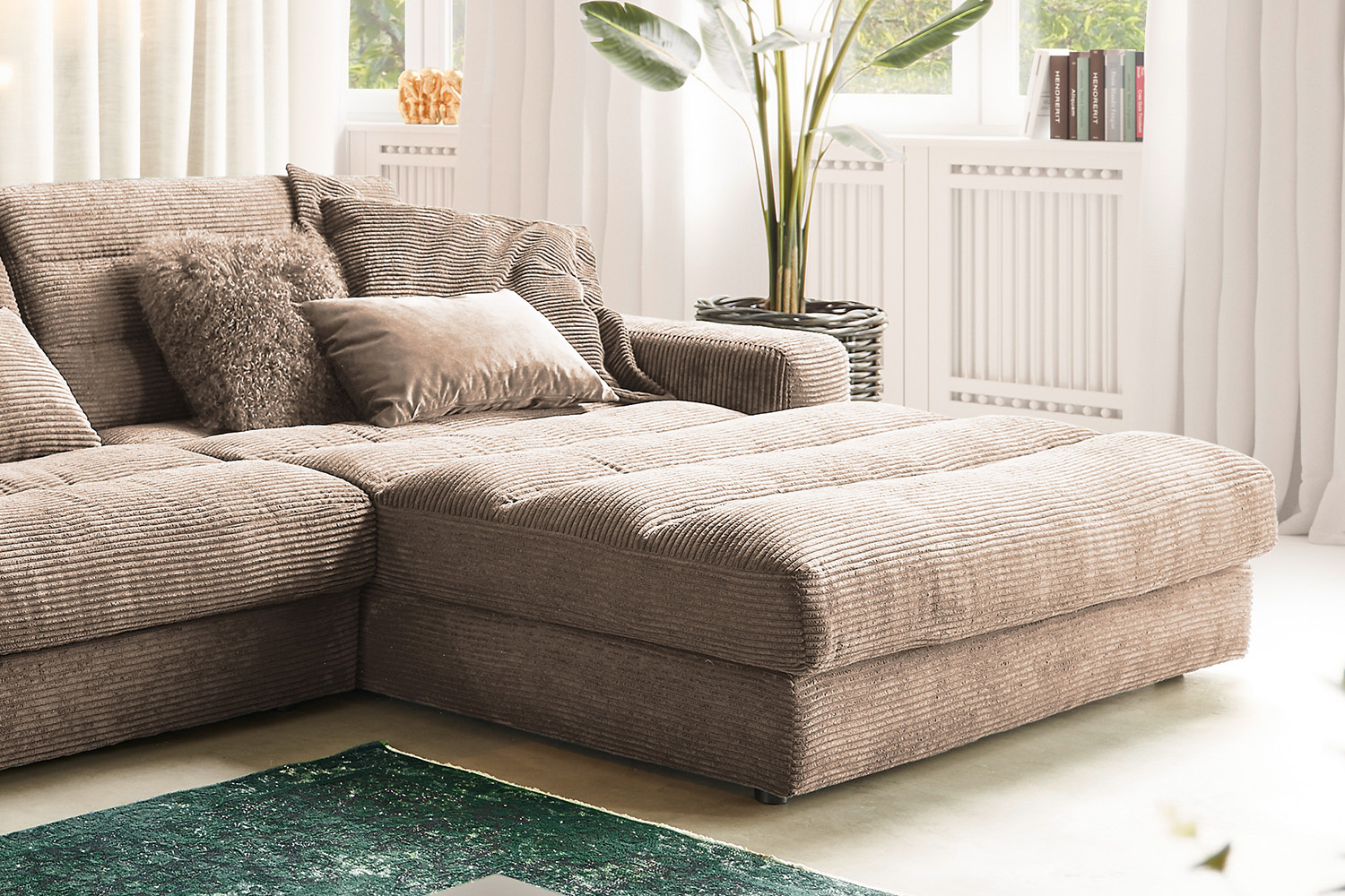 • Bezug aus angesagtem Cord-Stoff