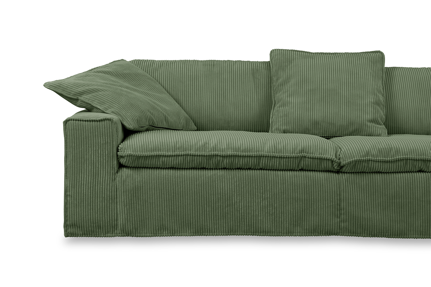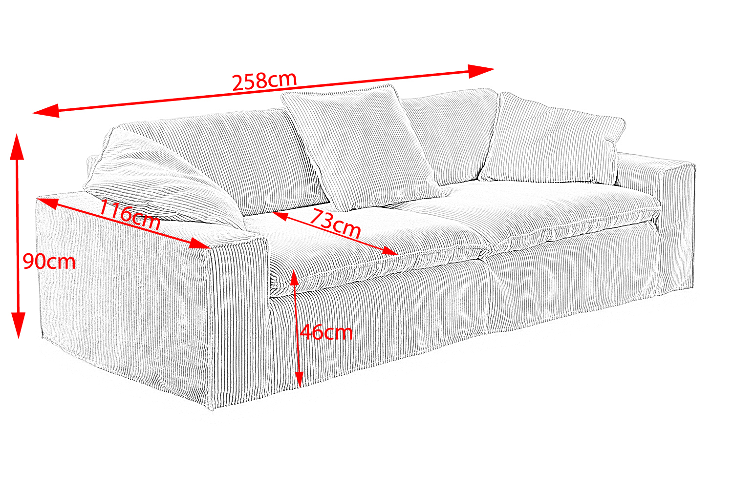 Der hochwertige Rundumbezug aus Cord verleiht dem Sofa eine zeitlose Ästhetik und angenehme Haptik. Der abziehbare Bezug ermöglicht eine einfache Reinigung in der Waschmaschine, um das Sofa frisch und sauber zu halten.