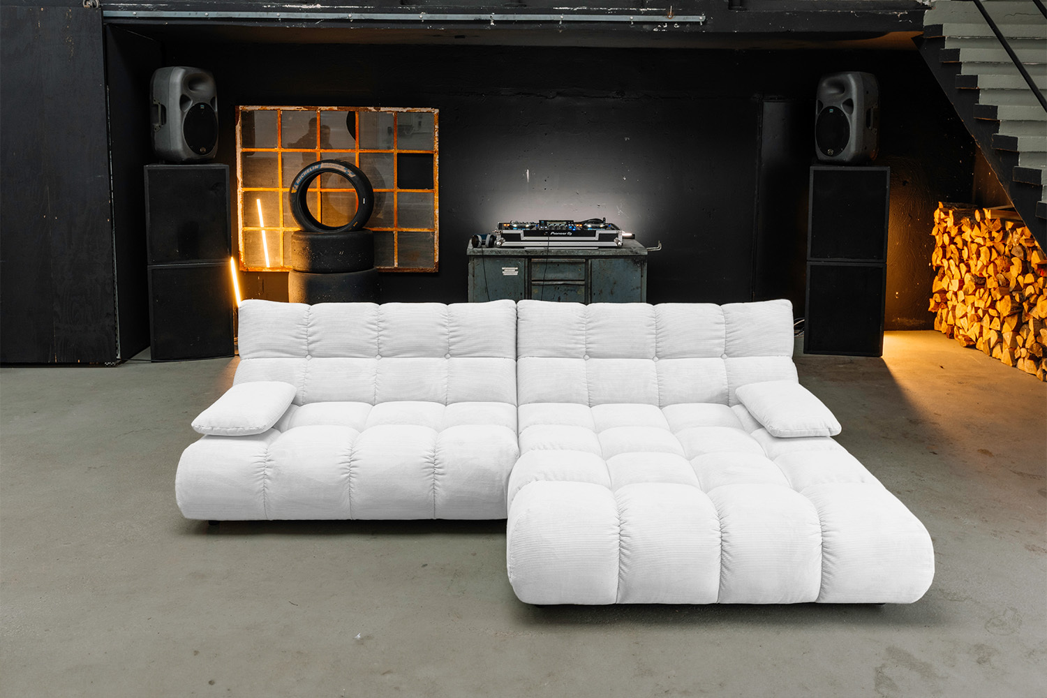 Der Bezug aus hochwertigem Feincord begeistert durch seine weiche Haptik und verleiht dem Sofa eine wohnliche, trendige Optik. Feincord ist strapazierfähig und pflegeleicht, sodass Sie lange Freude an Ihrem Ecksofa haben.