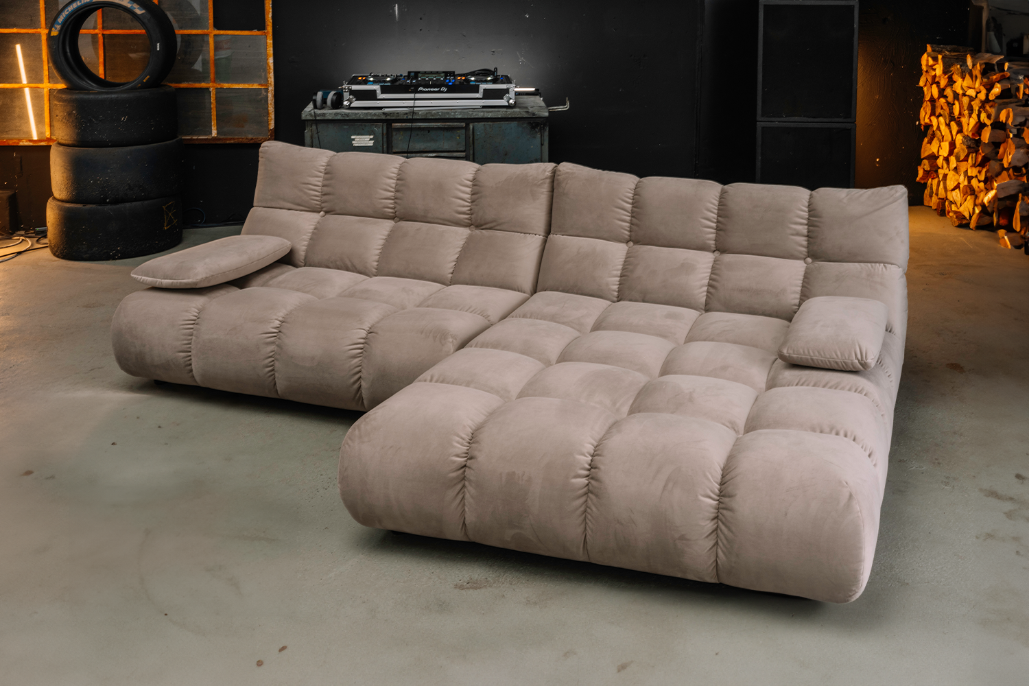 Der edle Velvet-Bezug sorgt für eine elegante Ausstrahlung und begeistert mit seiner samtweichen Oberfläche. Durch den feinen Glanz wirkt das Ecksofa besonders hochwertig und setzt stilvolle Akzente im Raum.