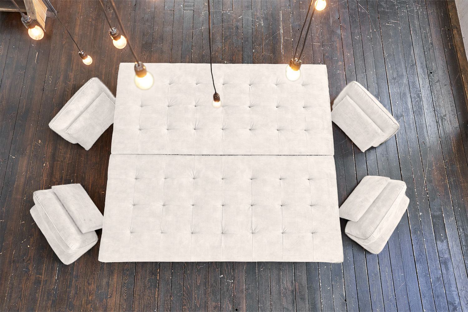 • Rücken- und Zierkissen sowie Module können individuell verschoben werden