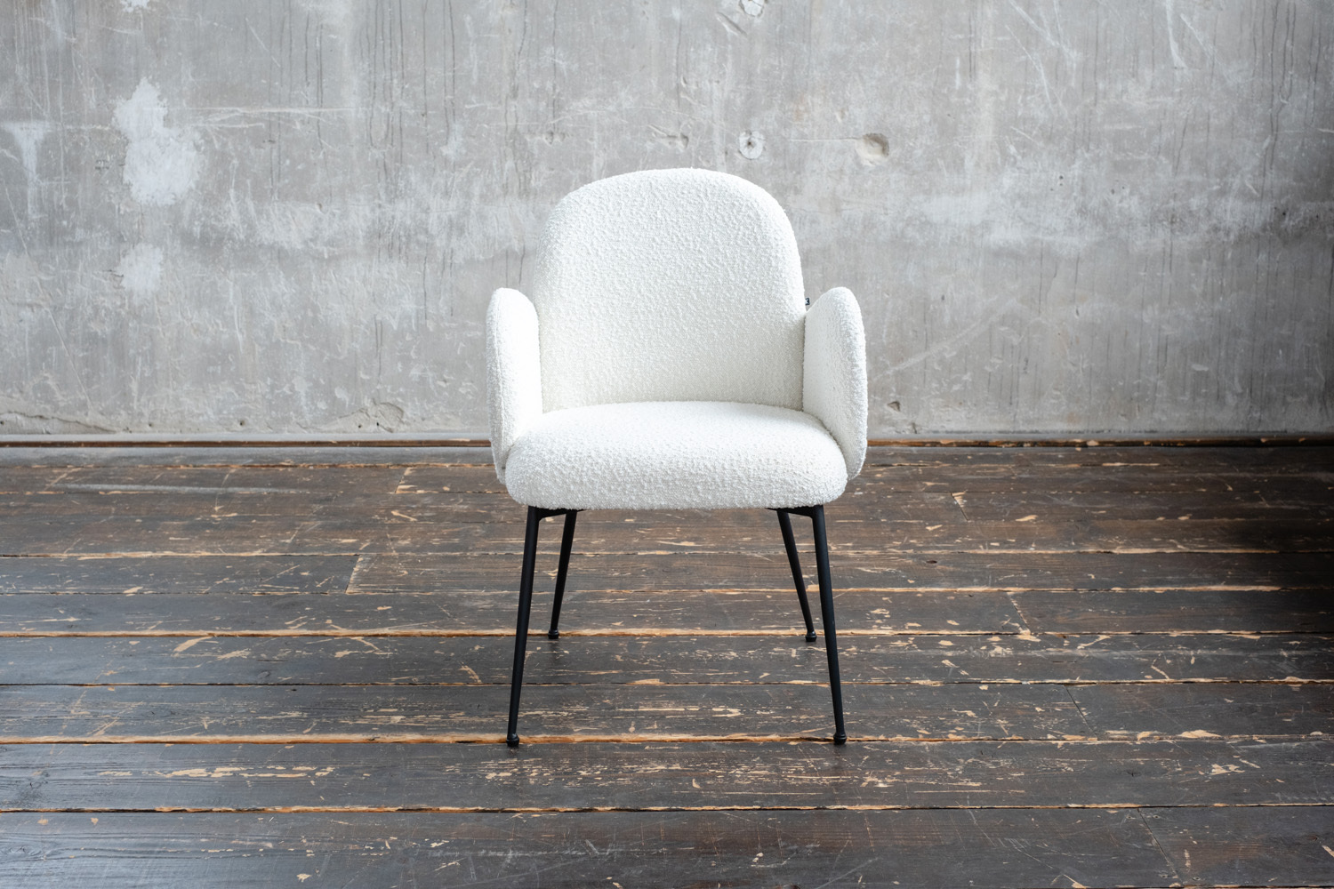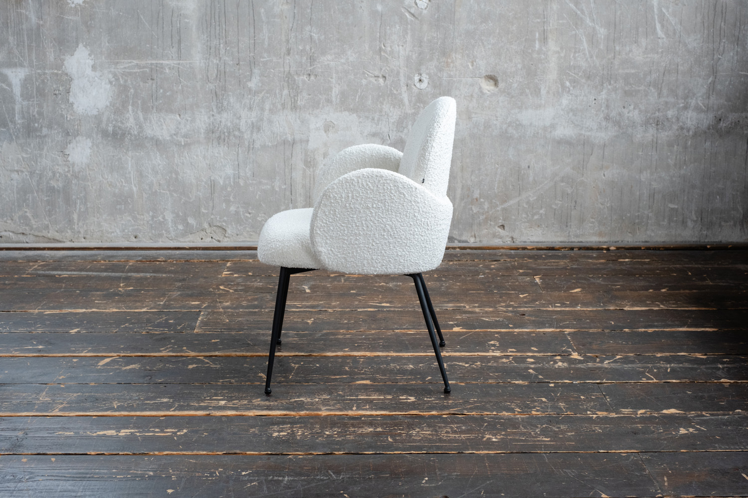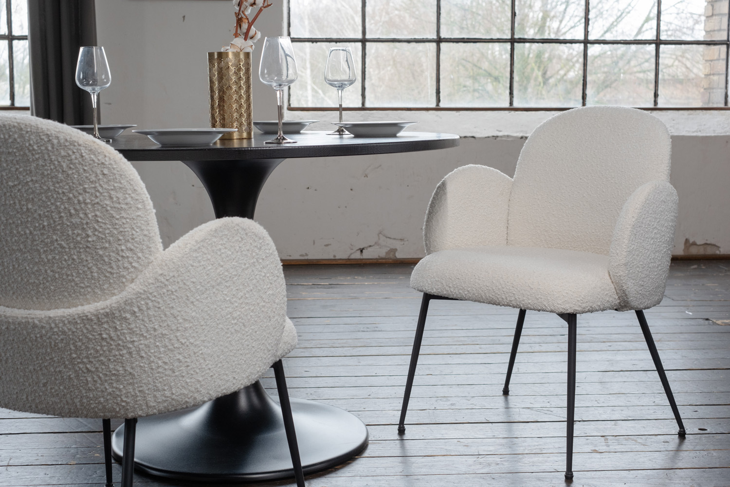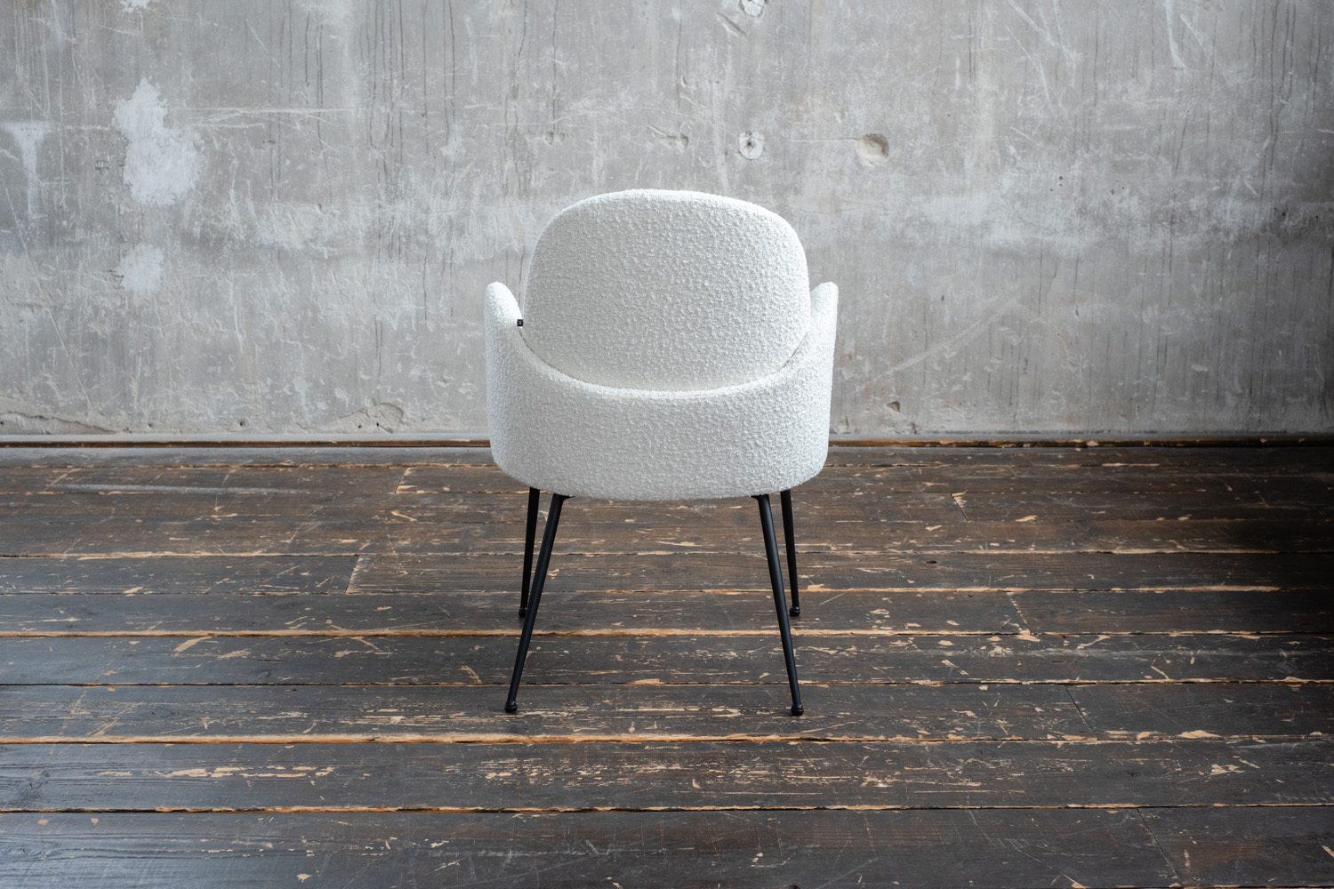 Neben seinem ansprechenden Design bietet der DEON Esszimmerstuhl herausragenden Sitzkomfort. Die geschwungenen Linien und gepolsterten Armlehnen unterstützen Ihre Körperhaltung, laden zu längeren Mahlzeiten und angeregten Gesprächen ein. Die pulverbeschichteten schwarzen Stahlbeine gewährleisten Stabilität und verleihen dem Stuhl eine moderne Ästhetik.