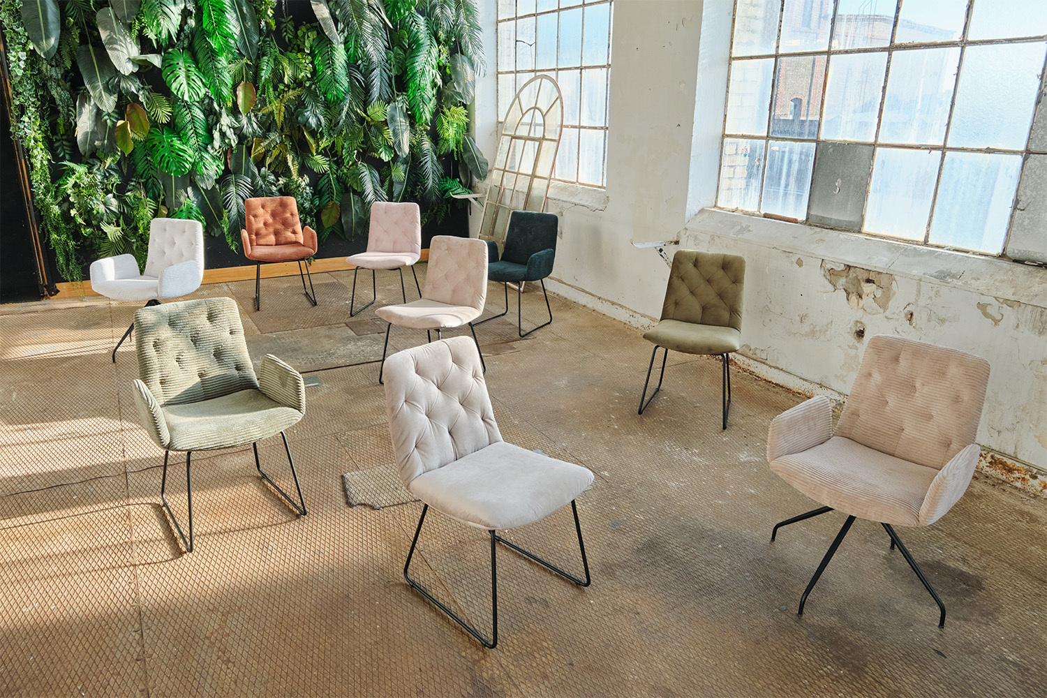 Der KAWOLA Esszimmerstuhl NEW CHARME ist nicht nur um ein Möbelstück, sondern ein wahres Design-Highlight, das in Ihrem Zuhause neue Akzente setzt. Der Stil der Serie NEW CHARME erinnert an die Sechziger Jahre: Der Rücken wurde aufwendig abgesteppt ohne Knöpfe; die Rückenlehne wurde an den beiden Seiten leicht nach vorne gewölbt und erinnert an die Form eines Ohrensessels; das Gestell aus Metall ist 360° drehbar. Zu der ausgefallenen Form des Stuhls NEW CHARME wurde hier der Bezug in angesagtem Cord-Stoff gewählt. Wer nicht nur einen Esszimmerstuhl sucht, sondern einen zeitlos-stylischen Trendsetter, liegt mit der Serie NEW CHARME von KAWOLA goldrichtig!