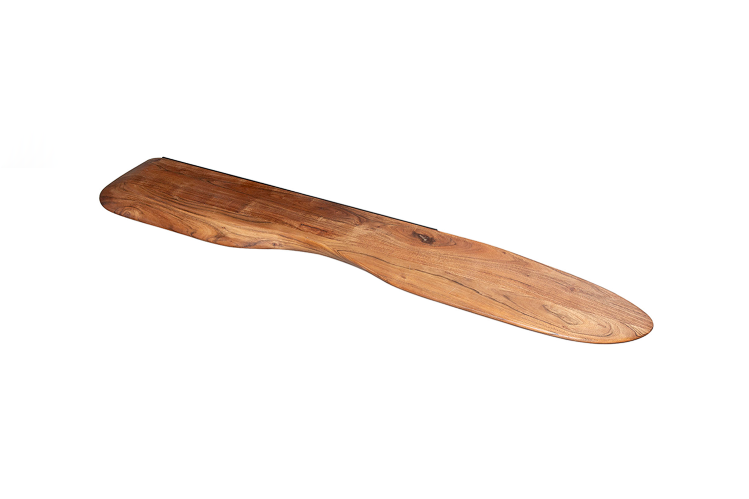 Ergänzende Details: Material: Massives Akazienholz, natur Oberfläche: Matt transparenter Lack, der die natürliche Holzstruktur hervorhebt Design: Set aus drei Dielen mit organischer Form für ein ruhiges, natürliches Aussehen Montage: Unsichtbare Befestigung mit mitgelieferten Nocken für schwebende Optik