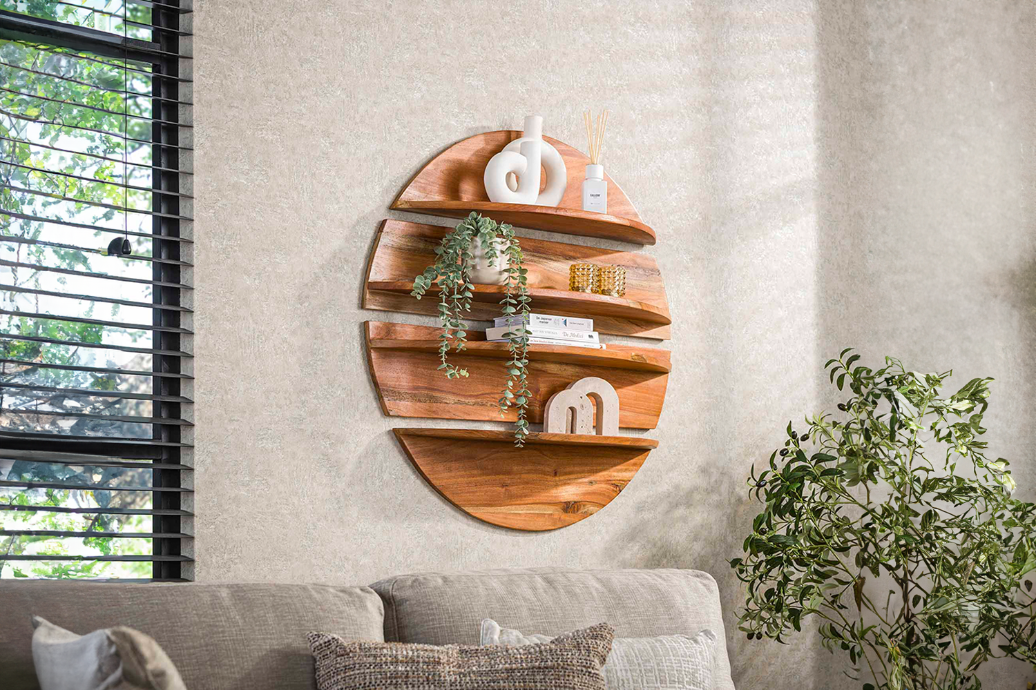 Produktinformationen "KAWOLA Wandregal KRISA 4-tlg. rund Neemholz natur"