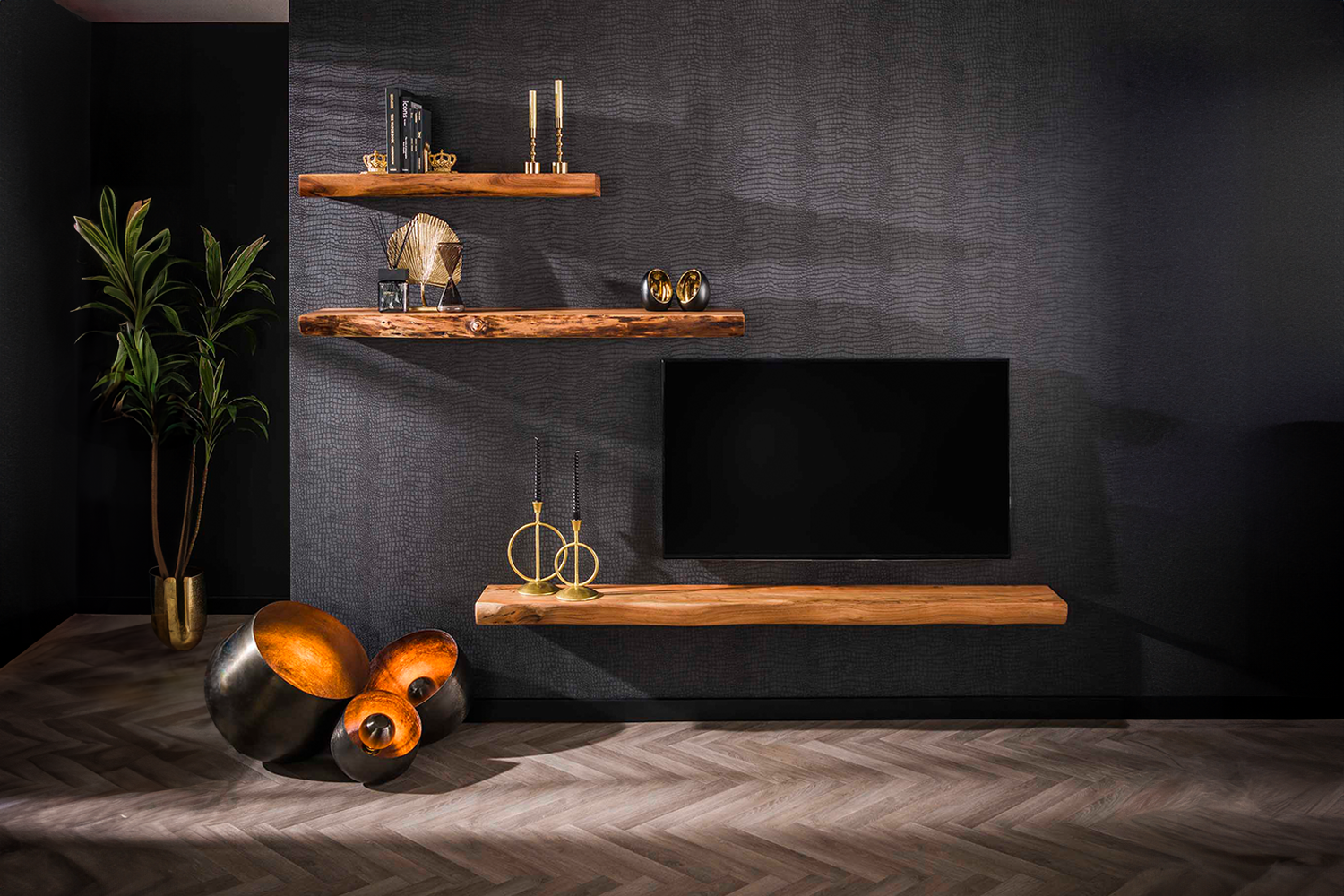 Ergänzende Details: Akazienholz massiv: Natürliche Schönheit mit matt-transparenter Lackierung Mit einer Stärke von 8 cm bietet es ein robuste, natürliche Optik Stabile Wandmontage: Sicher und fest mit Holzklötzen Mit einer Länge von 100 cm ist es vielseitig nutzbar