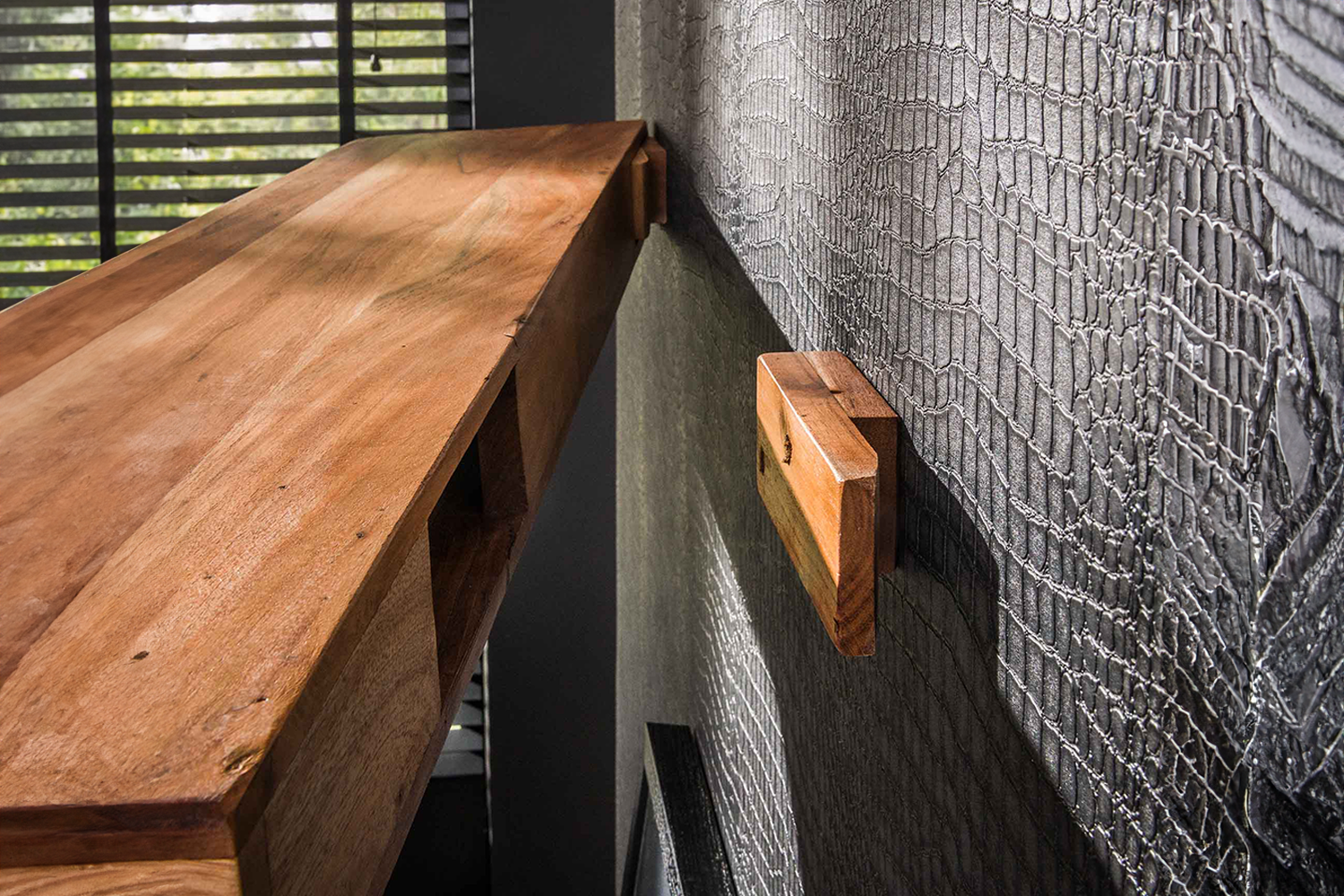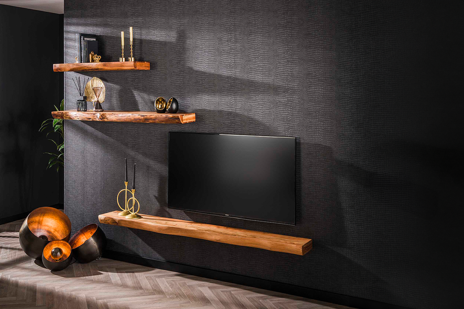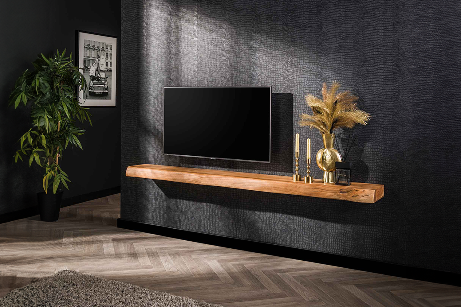 Ergänzende Details: Akazienholz massiv: Natürliche Schönheit mit matt-transparenter Lackierung Seine 8 cm Stärke sorgt für ein robustes Design im Baumstamm-Look Stabile Wandmontage: Sicher und fest mit Holzklötzen Mit einer Länge von 200 cm ist es vielseitig nutzbar.