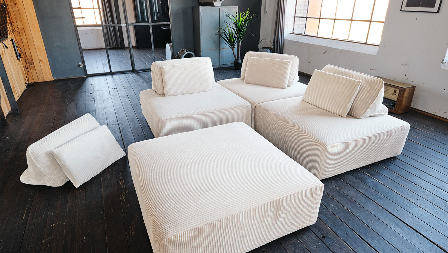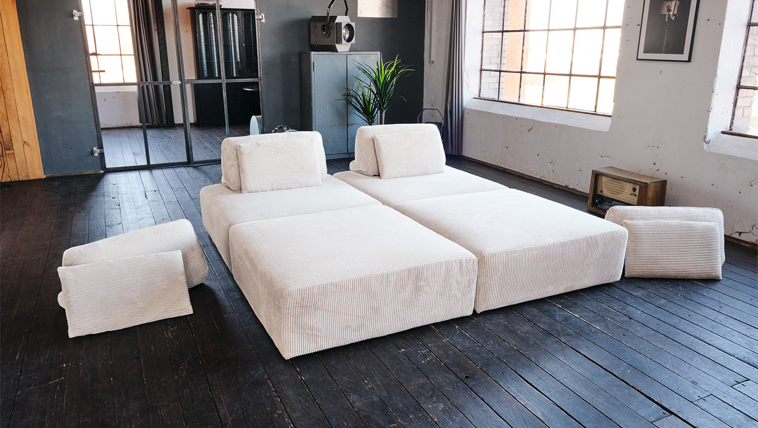 KAWOLA Modulsofa WIOLO SOFT 4 Module 4 Rückenkissen Cord cremeweiß