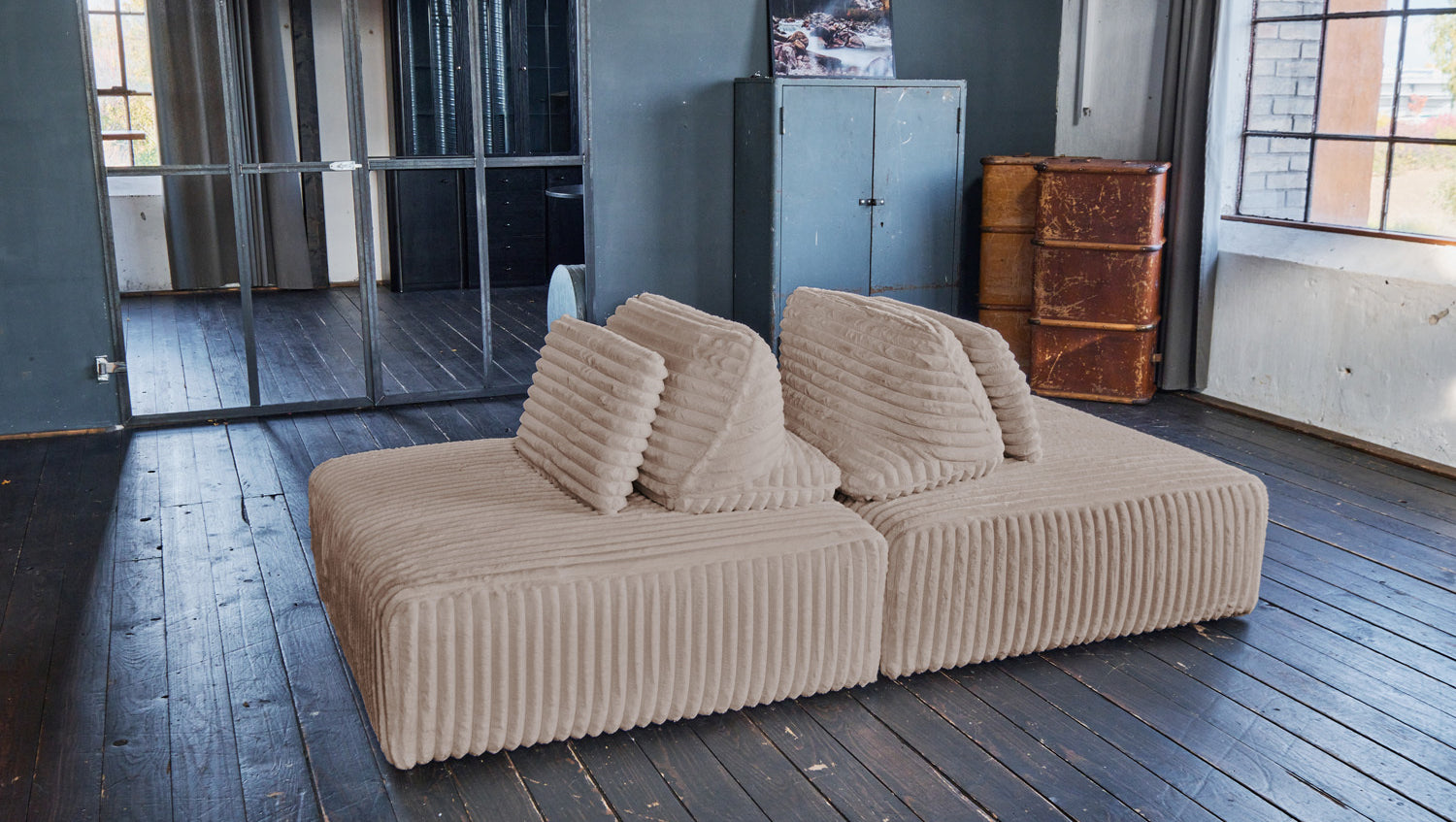 Passen Sie Ihr Sofa Ihren Bedürfnissen an... und nicht umgekehrt! Sie können das modulare Sofa WIOLO SOFT ganz individuell nach Ihren Wünschen anordnen, und das jeden Tag auf's Neue. Mit zwei Sitzelementen, zwei Rückenkissen und zwei Zierkissen können Sie Ihrer Kreativität freien Lauf lassen: Einfacher 2-Sitzer, bequemes Schlafsofa oder getrennt als 2 XXL-Hocker - WIOLO SOFT von KAWOLA lässt Ihre Wohnträume wahr werden!