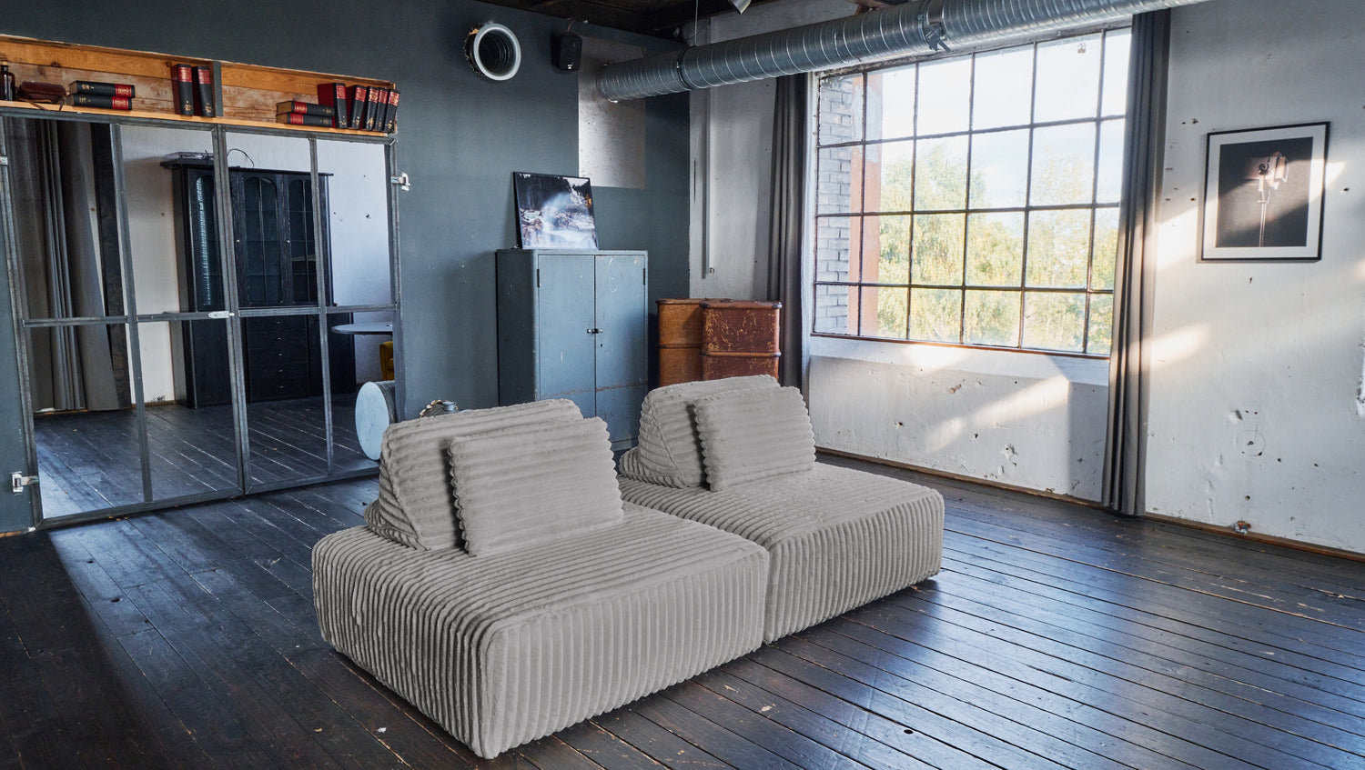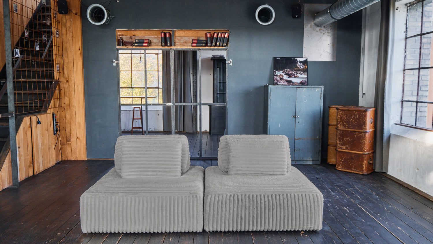 KAWOLA Modulsofa WIOLO SOFT 2 Module 2 Rückenkissen Weicher Breitcord grau