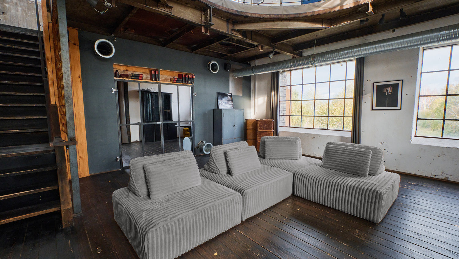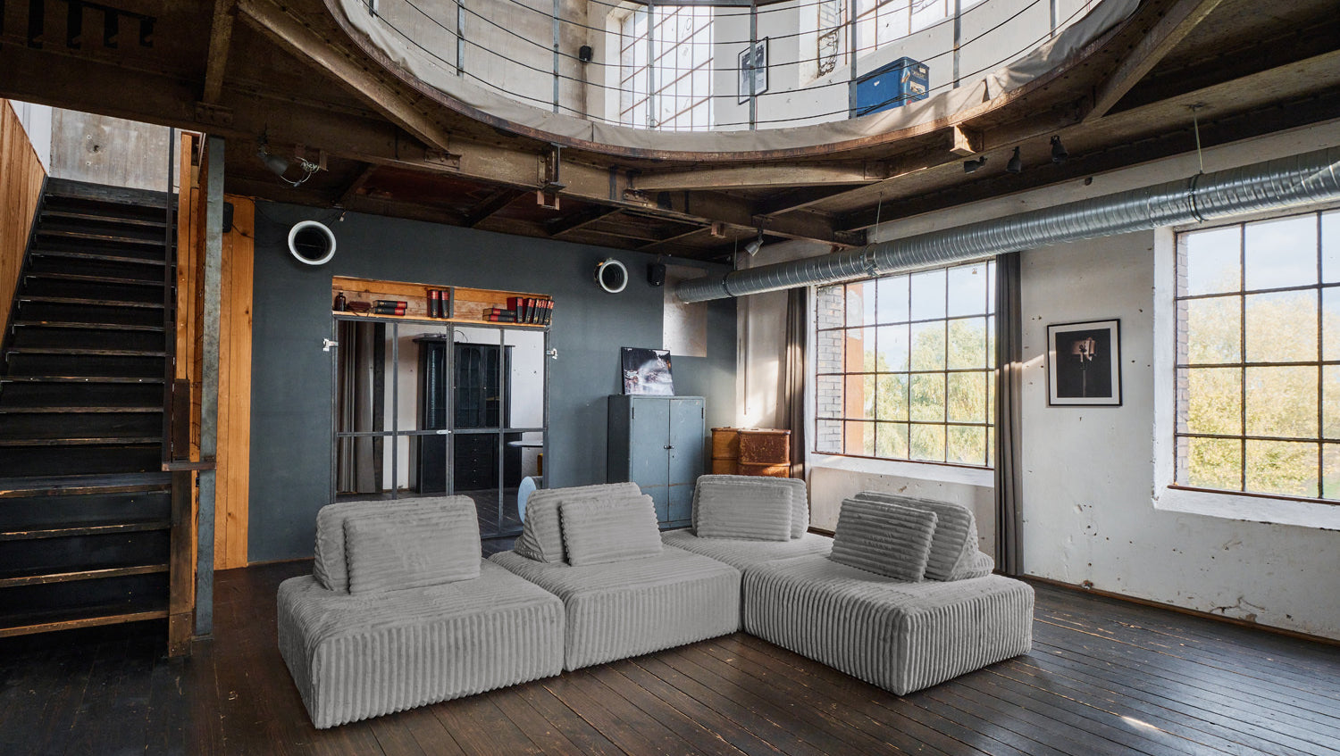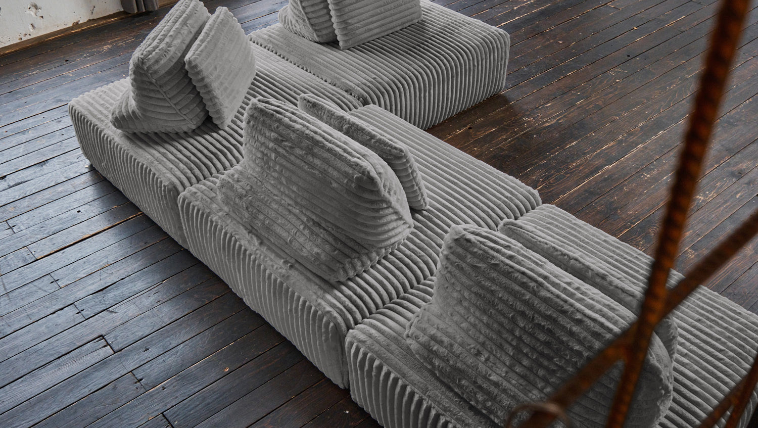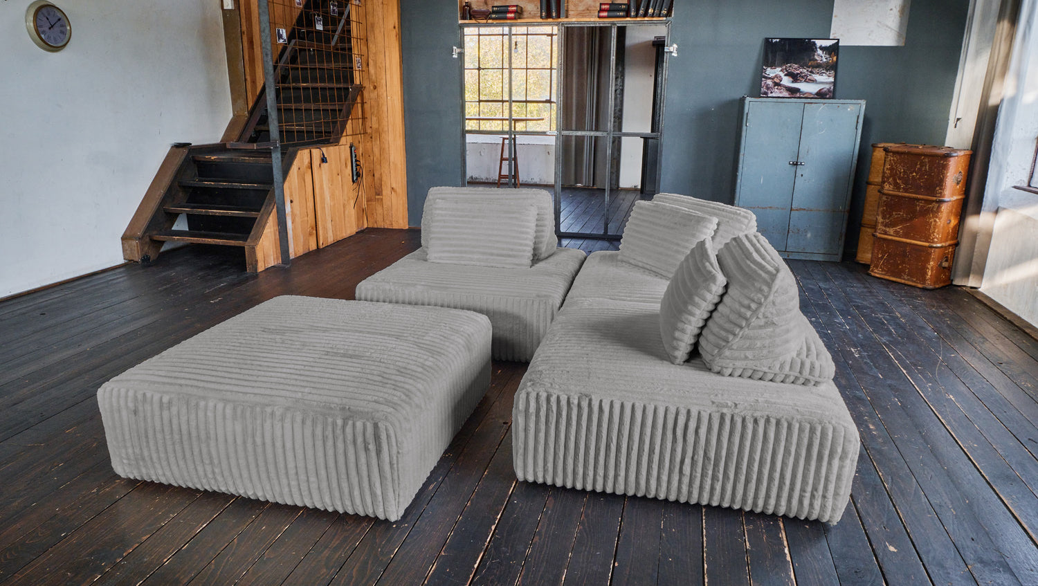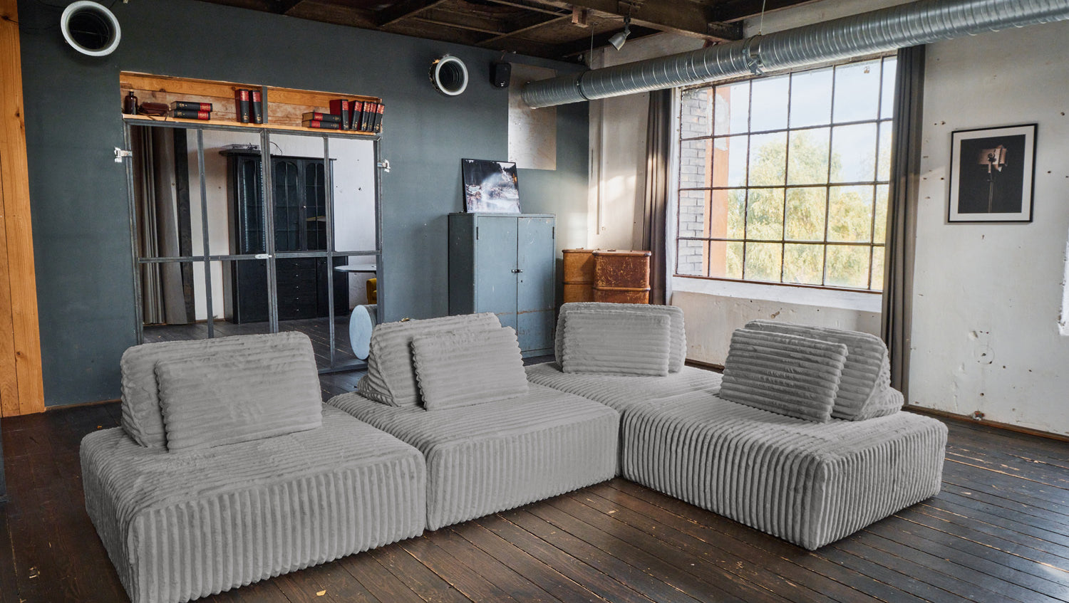 KAWOLA Modulsofa WIOLO SOFT 4 Module 4 Rückenkissen Weicher Breitcord grau