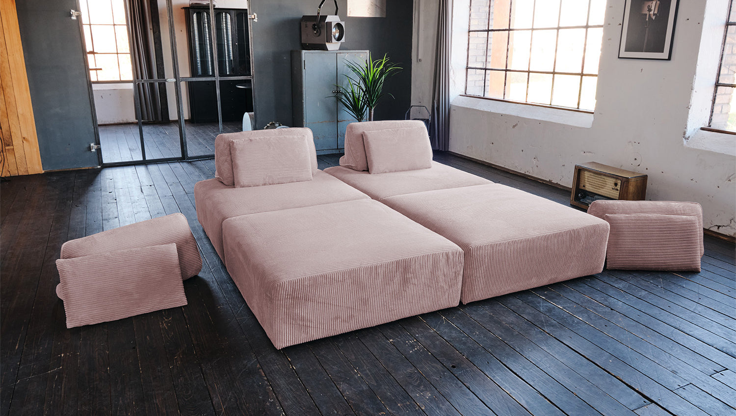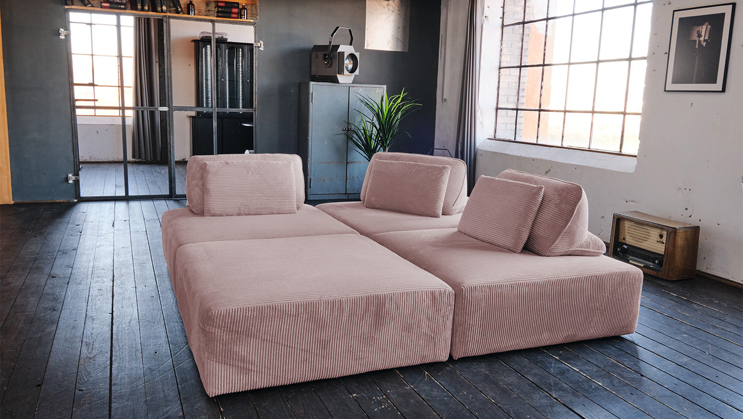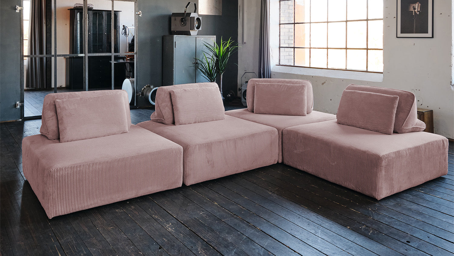 KAWOLA Modulsofa WIOLO SOFT 4 Module 4 Rückenkissen Cord rosa