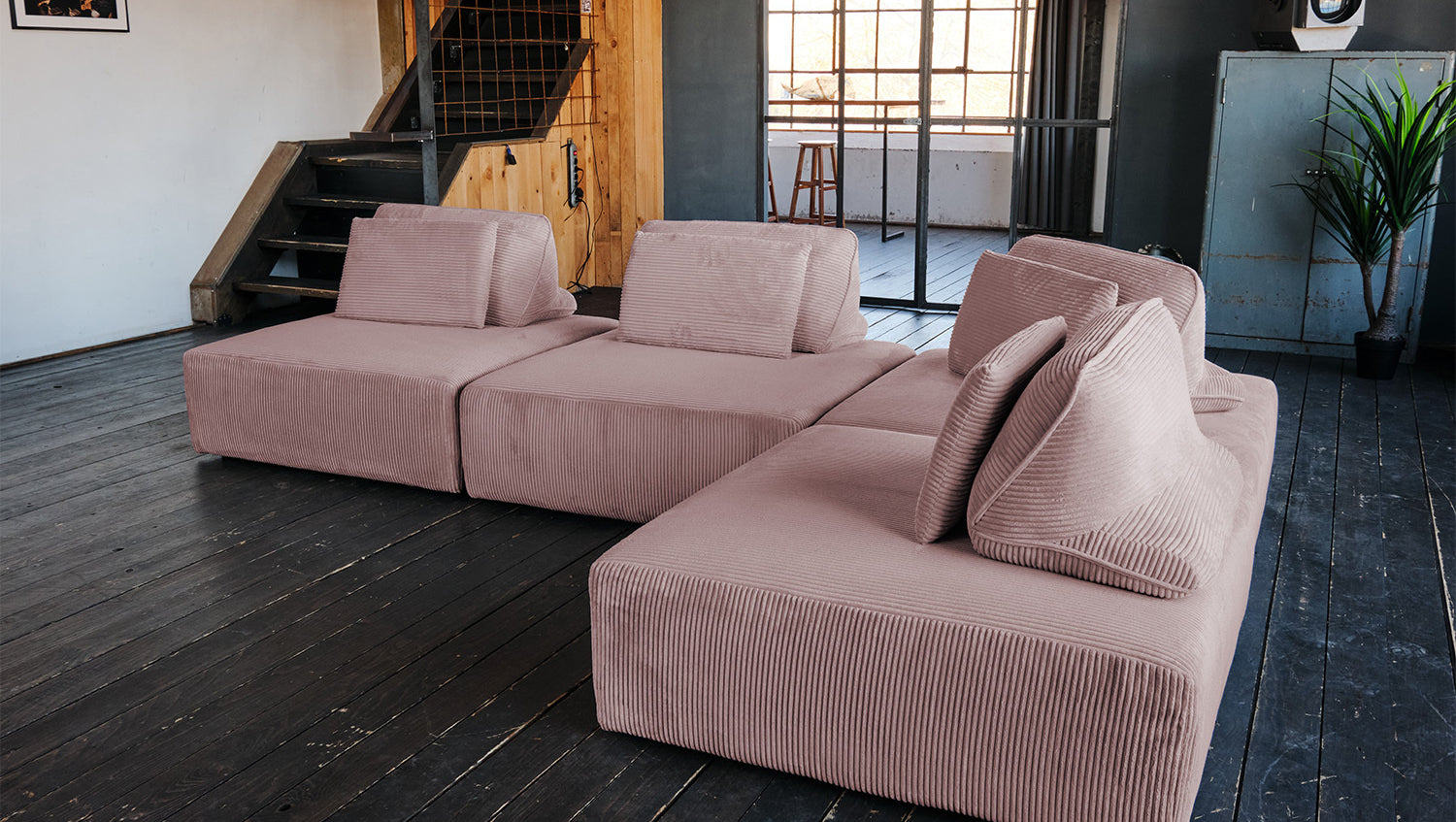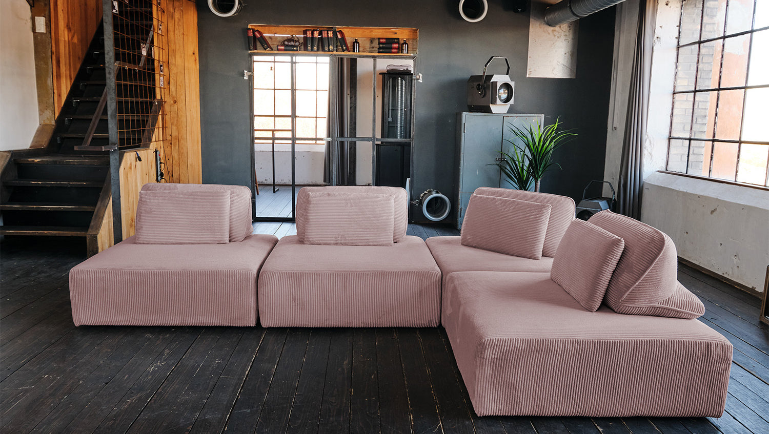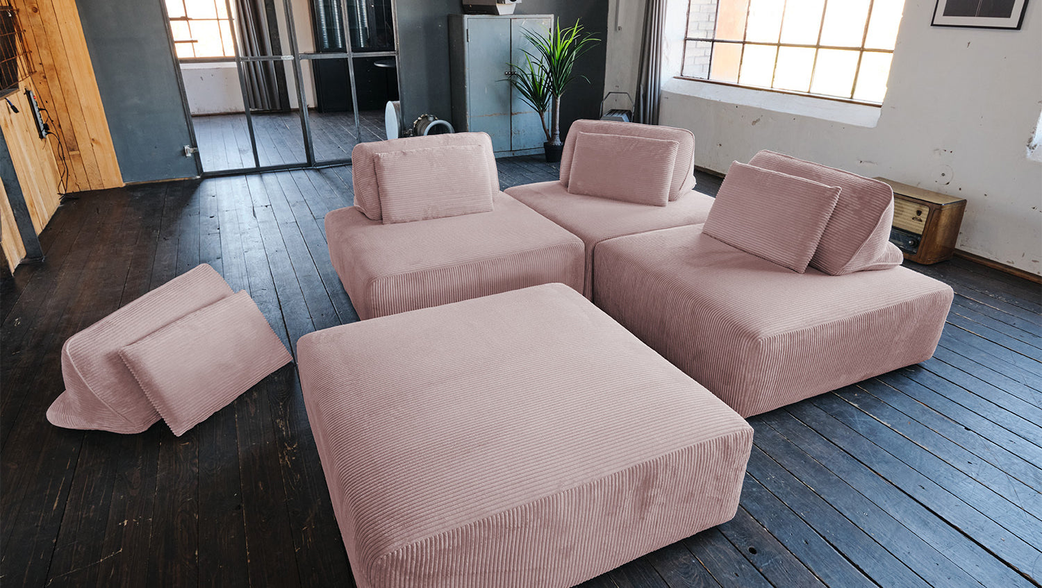 KAWOLA Modulsofa WIOLO SOFT 4 Module 4 Rückenkissen Cord rosa
